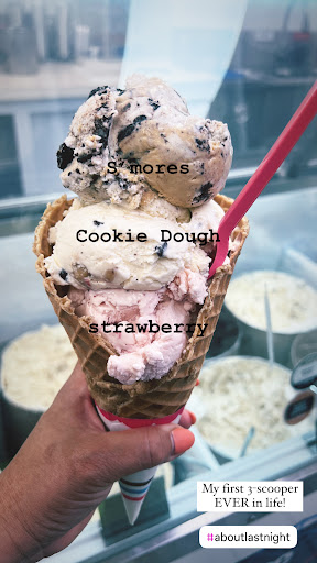 My first 3-scooperš¦EVER in my entire life! š Sāmores, Cookie dough, and Strawberry ā¦Basking Robins couldāve kept the sāmores scoop, tho. šš¼