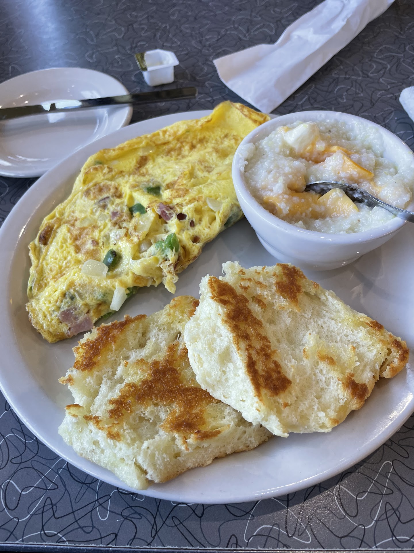 Came in to have breakfast this morning. Was greeted eventually and directed to a back table that was covered in dirty plates and food from a previous customer. It took a bit for the table to be cleaned before we could sit. We ordered our food, which was mostly inedible due to quality and overall temperature. I understand the business of the morning breakfast crowd, so I didn't bring my dissatisfaction to the attention of my server. At the end of my meal, a ticket was dropped on our table for half of the full price of the meal.