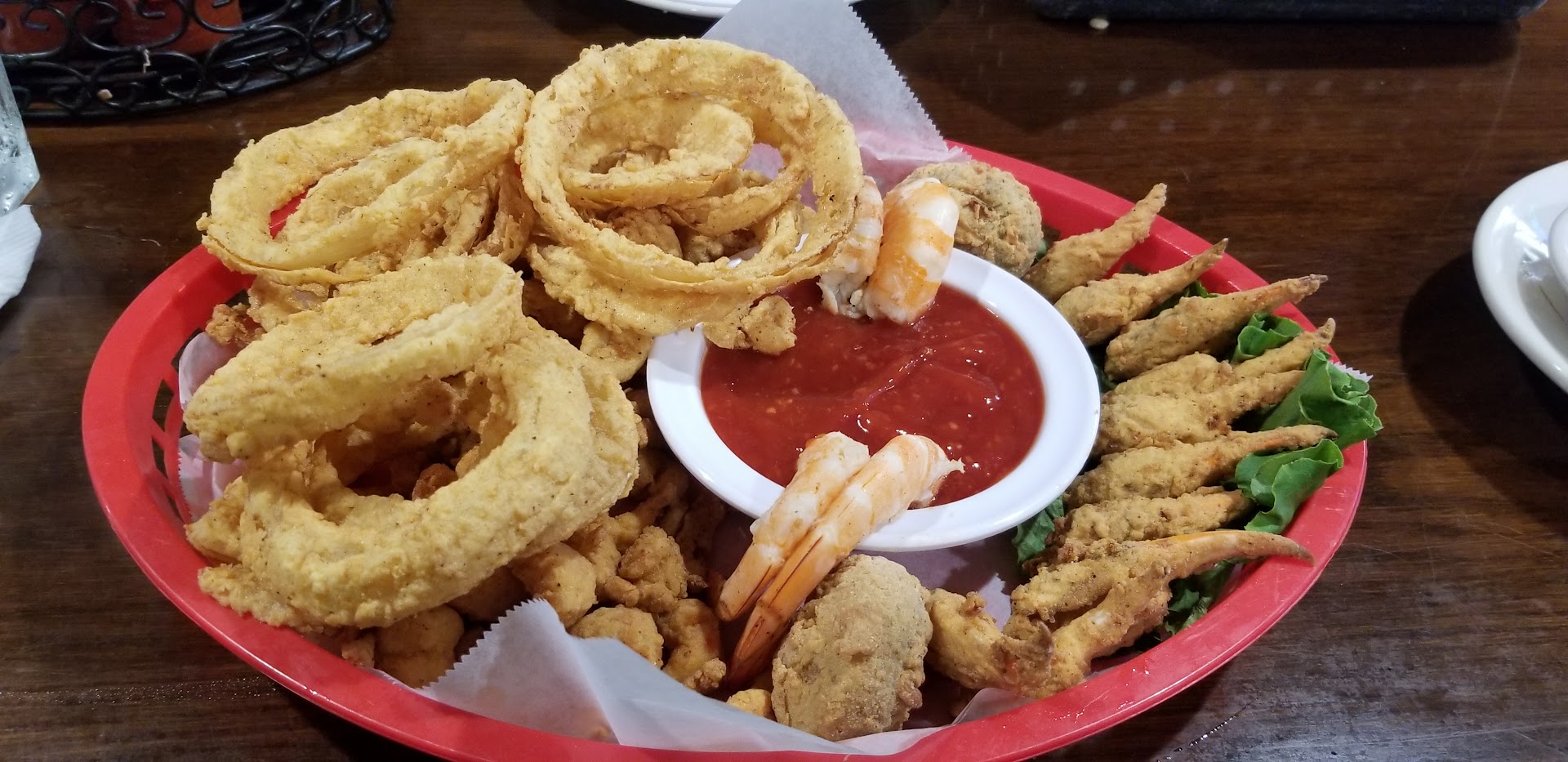 Read moreWe got here around 5pm (before dinner rush); 7/28/19. The hosts were fast to sit us down (i.e. there was no wait). Once we were sat, we looked over the menu and decided on what we wanted to eat (we usually take about 10mins to look over menu when we visit somewhere new). We put down our menus and waited to be served. Time passed and no one ever offered us drinks, much less take our order (at this point we were probably sitting for about 20mins before we decided to move to the bar where we saw the bartender tending to her customers). We sat down at the bar and she came within mins. She even noticed no one had served us when we were sitting at the regular tables because she asked. She quickly took our drink order and asked if we were ready to order food. We were, so she took our order. Since we ordered 2dz oysters she warned us that her guy was extremely slow because he was new. We still wanted the oysters so we said we could wait. We also asked her to bring out the food as soon as it was ready. She was right! Our food came out before the oysters. Apparently there was a 5dz order before ours so it took longer. To my surprise, the food was extremely delicious. Its hard to find perfectly fried food (very crisp, no burnt bits stuck on the batter, no dripping or excess oil) and all of mine was (i ordered the appetizer platter which more than filled me up). Hubby ordered the boiled shrimp and was happy with it too. He mentioned how it was not over-boiled like restaurants sometimes make them. We were about half-way done with our food when the oysters came out. The oysters were delicious too. They were a bit dirty (bits of black in the oyster liquid and on the outside) but i didnt find any hard shell bits in them. I was pretty pleased with how fresh they were. We did notice that we were only given 11 oysters instead of a dz, which we didnt mention to our server. We figured it would take too long to replace. Lol!! Im glad we were not in a hurry because we wouldve given this restaurant a bad review for not serving us in a timely manner. This is the reason they get a 4-star. Ignoring the initial waiting issue, we had a great time and would definitely try this place again. We do recommend coming here because the food is delicious. You will not be disappointed with the food, although I cannot guarantee their service. Maybe try this place when youre...