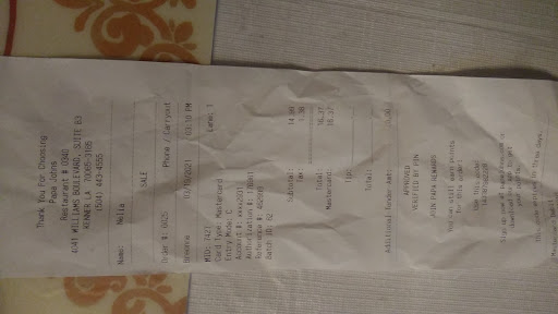 This is the worst pizza place I have ever done business with. The drivers try to take shortcut to accomplishing their job. More than once they took over an hour to get my pizza to me. They reported to the store that they knocked on my door and there was no answer so they went back to the store. So then I had to wait for them to resend the pizza, the cold pizza, back to my door. There were Specific Instructions for them to call me when they rolled up to my gated community. They never did that. Then when I attempted to talk to the manager about this problem they told me that I would have to just get over it. That there was nothing they could do and I should listen better for the knock on my door. They also tend to skimp on ingredients. Multiple times I have ordered extra cheese on my pizza and it comes with barely even the standard amount. In short I have had multiple problems both with the quality of the food and the employees of this establishment. Going to make this switch to ordering pizza from Pizza Hut or Domino's as this is the only Papa...