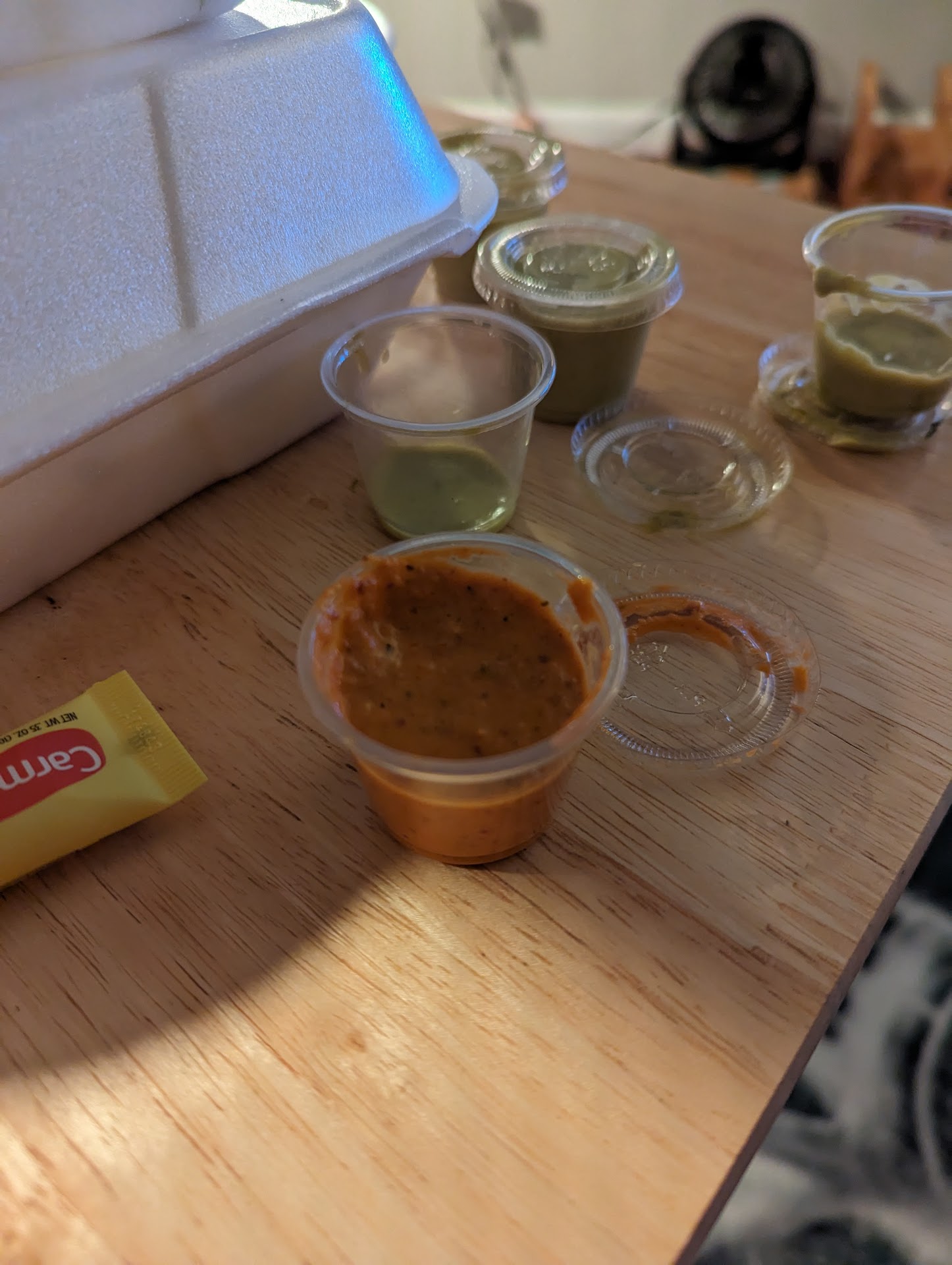 So I have been looking for decent tacos since I got down well I ordered 2 tacos ๐ฎ pollo and asada asada tostada and asada torta .. to go as I arrived I felt as if I don't belong there but I have gotten this a lot down here.. I understand that I look like a racist with the bald head and goatee but I am the complete opposite... But I grab my to go order and I'm about to sit down and max down on this food I opened it up and it was ten tacos so I called they immediately remake my order and I can keep the tacos like sweet!!!! So I get my correct food and I start eating my order mind you and this time I didn't touch the tacos but I opened up the tacos to get the lime out and I realized that it has a red sauces as they gave me all green ๐. Now that green had me sweating ๐ฅต and we all know the red is hotter man I was ๐ต๐ต๐๐ my tongue went numb I was crying but man I was in love I'm a little pissed that they gave only green thinking I couldn't handle it but yes try this place out I think they rushed my order but the food was...