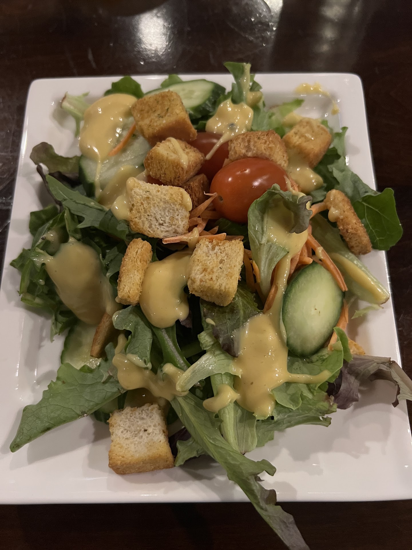 They have a very limited selection of food items for a big hotel’s only restaurant. I ordered chicken fingers and fries (Buffalo w/ ranch) I enjoyed my meal. I was able to charge it to my hotel room. And brought my beer glass from the bar upstairs to my room. Also limited on beer selection. The bartender was a little rude- and I ordered my food 3 times… same for the guy sitting next to me- who ordered fettuccine Alfredo . He got rotini. It was still pasta… just weird that the menu advertised it as fettuccine and...