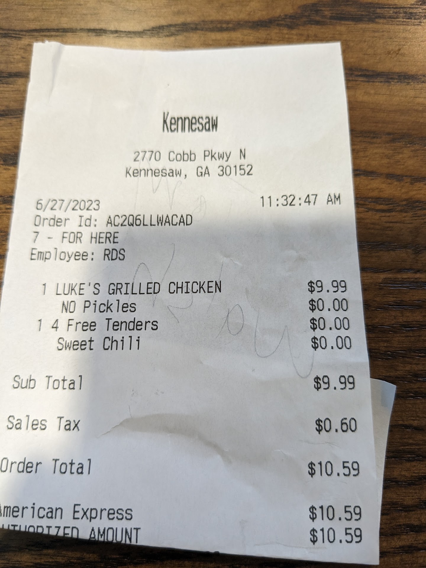 Read moreBased on their bold claim of having the best chicken tenders in Georgia, we decided to give them a try. I'm not sure what gave them that impression, as we found them to be edible, but not desirable. A far cry from "best".