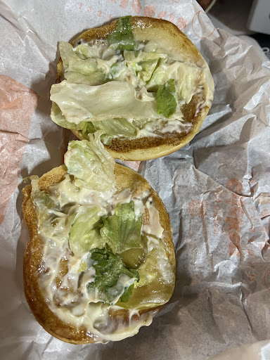 Soon enough, he rushes back inside and to the back, not even stopping to wash his meat-hooks, and he starts making a Whopper. Think8ng it was mine, as I had been waiting about 5 minutes at this point, I say, "excuse me if, if that is for order 98, please add extra mayo, thanks!"