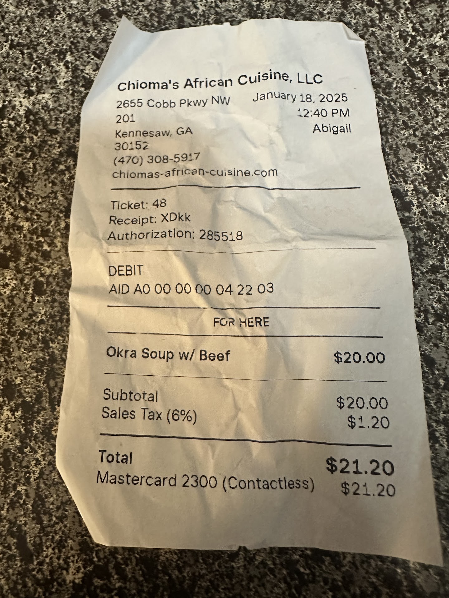 Don’t waste your money or time! This was the least flavorful African food we have ever eaten! We walked in, there was no other people seated/ eating at this restaurant (which should have been a hint to us) and all the staff was on their phones ( we heard their phones playing videos) and we waited to see if anyone would say anything, they did not stand up or speak to us, so after waiting 30 plus seconds we spoke and said this is our first time here, would you prefer we seat our selves? And they finally spoke to us. When we sat down we noticed that the plates on the table were not clean, but we just traded them out with the table next to us. Then when we ordered we asked, if the meat would be tender and she said yes, it is all wonderful and very tender meat. We ordered three meals that we usually like to share for two people, we got the Egusi soup with turkey(more bones than turkey and the toughest meat we have ever tried to eat), Jollof rice with goat meat ( the rice needed salt, which was surprisingly bland & the goat meat was not tender like she said it would be) & Okra soup with beef (the beef was the best meat tonight, which was not great). We also ordered a side of plantains (they were not cooked thoroughly). There was a tv playing music videos loudly (this actually helped with the ambience) that stopped playing soon after we received our food and the staff didn’t notice or care because they were playing their own cell phone videos that we got to listen to while we finished trying to tenderize/ pull apart and debone our food. Two people came into pickup orders while we were there and we could here a microwave being used. Maybe that is why the food was so tough, we just couldn’t hear that they were cooking or reheating our food in a microwave because the music videos were being blasted on the tv while we waited for our food to be served! So, beware, there are much better places to go eat African food at. This place should NOT have the name CUISINE in their name! The staff never came to check on us either. At the end of the meal when I did not tip (which I never do not do, I always tip at least 20 %)the waitress seemed upset with me and she said, was something wrong, I said to her, first, you never came to check on us, you also said the meat would be very tender and I told her that the meat was very tough and there were more bones than meat and I showed her the plate of bones and then she started to raise her voice and tell me the meat is very tender, so I responded, maybe our definition of tender is different, but I can’t believe you are trying to argue with me! She said, we hope you will try us again, I said, no, we will NEVER be back here, because we know of many better restaurants than this and you have had your chance to show us what you are capable of, good...