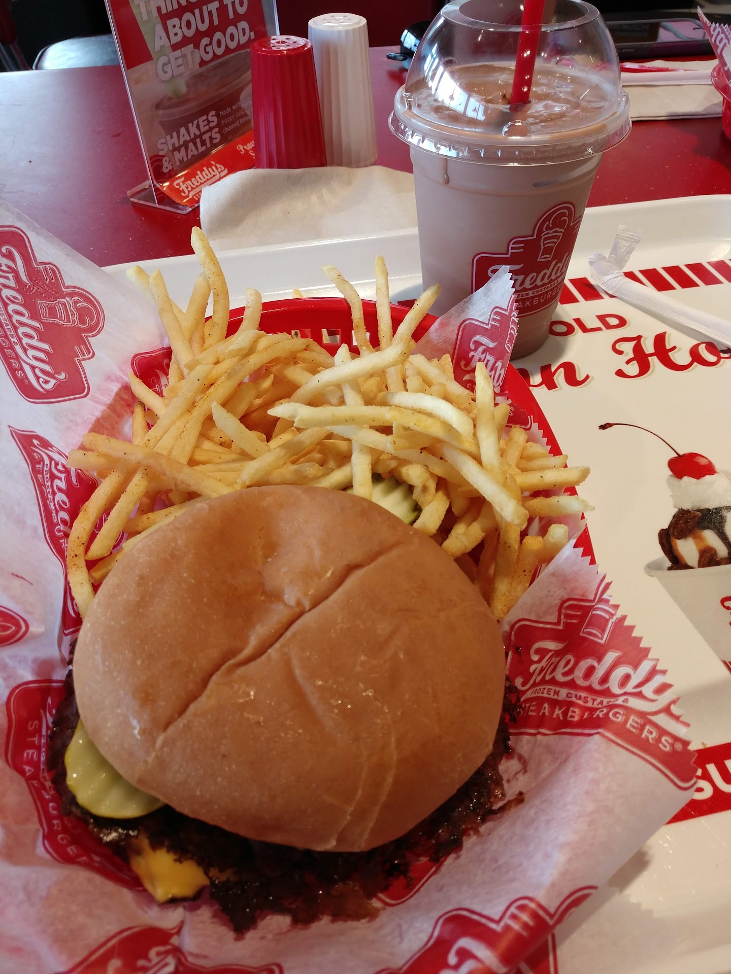 Ā Ā Ā Read moreDisgusting. The restaurant used to to be alright, but new management is running Freddy's name through the mud. It looks like nothing in the dining room has been cleaned in months. You can see the filth running down the sides of the booths. There's never a clean tabletop, we have to ask for someone to clean. There's food on the floor, it's sticking to your shoes where you don't see food. The kitchen from the counter to the drive thru window all the way back to the fryers is beyond filthy. Fries, grease, bags, gloves, general trash... everywhere.