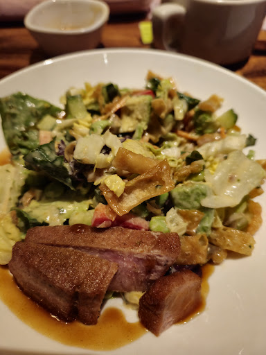 Lunch - I ordered Bahn Mi wrap with grilled chicken and fries. I waited for anyone to come back to the table, as I’d received a fried chicken bahn mi instead of grilled. The manager came over to the table and said again dryly - your sandwich will be out soon- and walked away - didn’t ask how anything had been Didn’t apologize. That was the extent of him checking on us. A few minutes later he brought out the wrap. I took the wrap off the plate He asked me if I wanted the pickle. I said “no” and he walked away. He didn’t pre-bus the multiple plates on our table. He didn’t notice our glasses that were empty and offer to refill. Nothing. I began eating and he passed the table with the broom and dust pan. He didn’t check on us but I said “excuse me could we get some refills on our water?” He said “sure” and then snapped his fingers at someone and about 3 minutes later we had water.