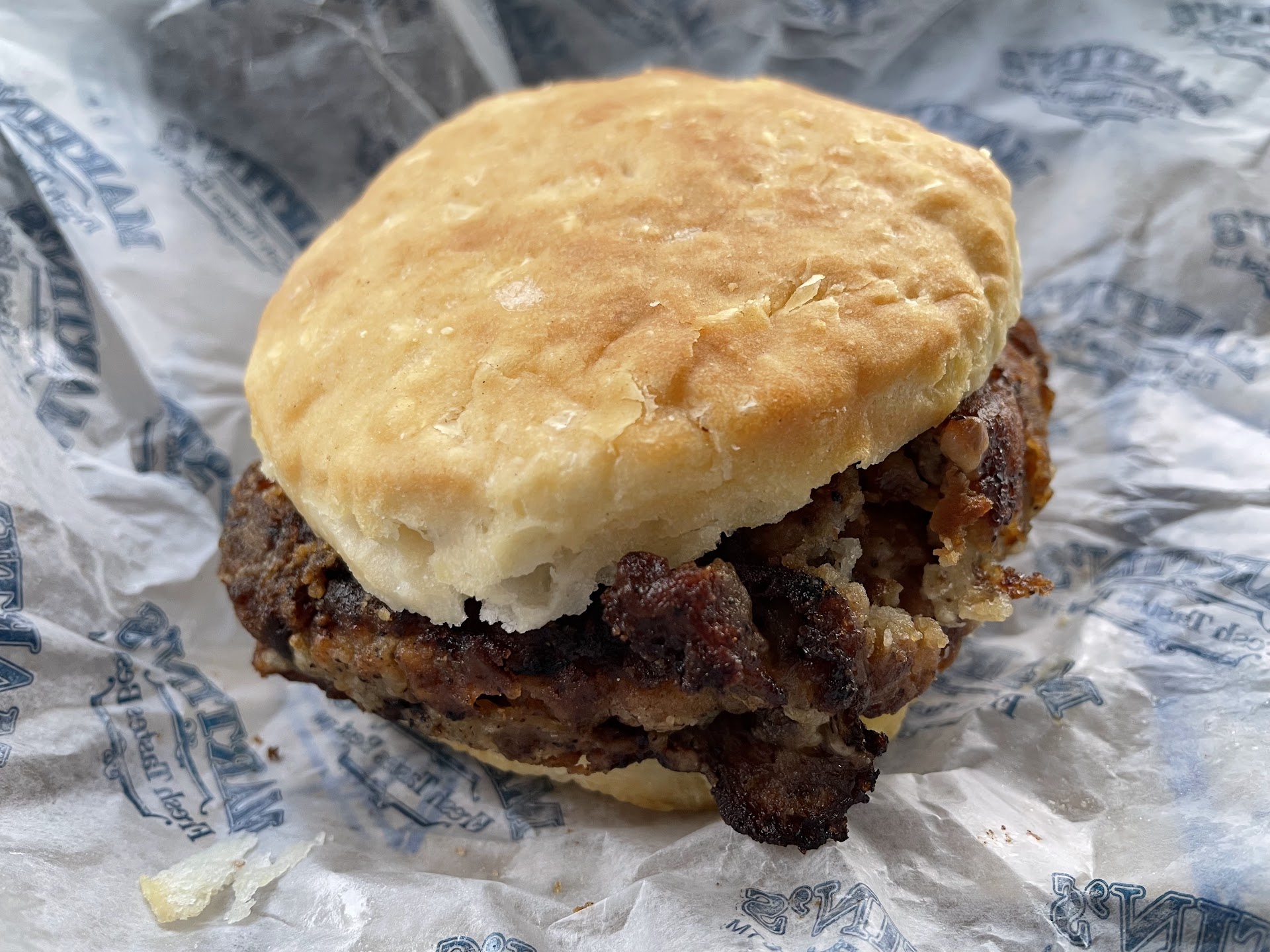 When I got the food back a few minutes later, the eggs were nice and hot, but the rest of the food had cooled down... so I didn't get to enjoy a nice hot breakfast plate like I was hoping. So I had a room temp aggressively buttered biscuit, hot scrambled eggs, and luke warm gravy. I hate dealing with people so I just ate it because I was eating my first meal of the day at about 1pm-ish, give or take 15 minutes.