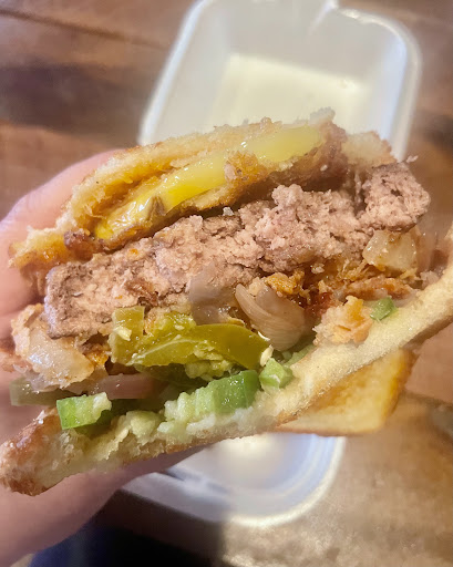 My wife worked on the Cadillac lamb burger and the loads of SP fries but when she got half way into the burger, the flavor overwhelmed her taste buds. Is mutton for you?