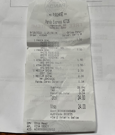 Read moreWent thru the drive-thru on today.. I pulled off when the young 18 yr old girl Diamond gave me my total... As I'm pulling off, she asked did I want to donate... Mind you, I've already drove off by this time. While @ the window, she gave me the total... didn't speak...gave me my food & didn't speak... No type of greeting from her, as usual.. I have 2 grown men & she is very rude & disrespectful.. I said to her, you know you never speak to me when I come to the drive-thru... She proceeded to tell me, because you're rude... because you pulled off while I was talking to you... which is beyond me... If ur irritated w/ a person for that to where you can't do your job, just keep living.. If you are irritated with me because I pulled off after you gave me my total & then proceeded to ask did I want to donate.. you need to find another job to where you are not dealing with people. If I was out of character, I could've snatched her thru that window & handled business... She was very rude & SHOULD know better... I've never had an issue with anyone else, but her.. Especially after getting my order wrg twice w/n a wk... Panda owes me money... She went bck n' 4th w/ me @ da drive--thru... Ur 18 & I'm 40+ yrs old... Do not go bck n' 4th w/ me... Let's just say, I hope n' pray DIAMOND doesn't try this again.... LetsL just say that... My only visit to Panda will be to...