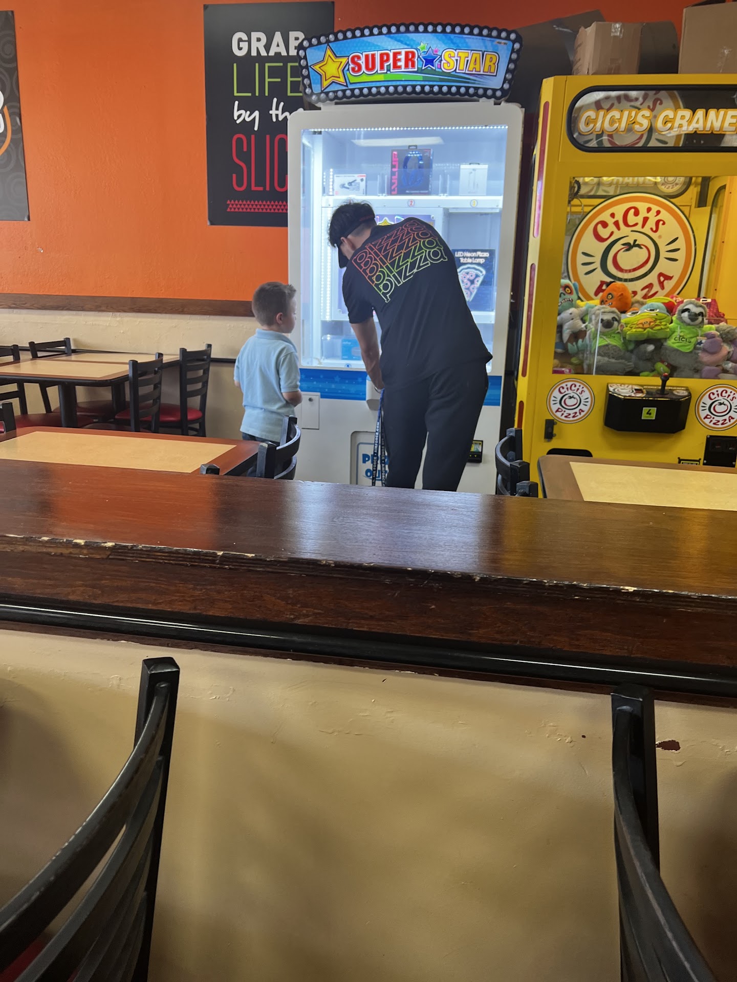 From an adults standpoint this place is a mental breakdown waiting to happen. Especially from an adult who didnāt realize what type of establishment I was walking into. Thatās my bad. My kids had a blast though. They absolutely loved the environment as well as the games. They loved all of the kids running around. They loved all of the noise and the lights. They didnāt care for the food though. They can be picky eaters though. My son likes the noodles and red sauce, however he was too excited by the lights of the games. The food was okay. If youāve never been to a cicis before, and if you have kids, and donāt have anxiety issues, this is a great place to bring your kids. If you are sensitive to overbearing noises and flashing lights , and a stranger preforming magic at your table for tips then this might not be the place for you. The magician was nice, however he was not employed by the establishment and was working for tips. He seemed like a nice guy , just trying to make money and I can respect that. However as a person with anxiety issues, I donāt enjoy a person hovering by my table. But the smile on my childās face when watching the magic tricks was awesome and makes it worth it. Most of the time we spent there, the food was cycled out as thoroughly as possible. For the most part the place was clean. There were tables that were messy but it was a Friday night, and half the tables were full. There were large parties throughout the whole place. I think the staff are doing their best and while dining there, they were always doing something productive. The Alfredo sauce was off putting. The red sauce was okay, better than other places Iāve been. Sometimes the pizza slices were really hard. The chicken looked really fake though and the chicken broth for their chicken noodle soup looked like it came out of a can. Which it probably did considering this is a place where on a Friday night you can spend 30$ for a buffet for two kids and two adults. So cheap bite, but Iām still hungry because the food wasnāt appetizing. But I also donāt blame the restaurant for that because I like flavor and their target audience is kids. Which people are taught to not give their kids flavors so kids donāt care if the food is tasteless. Anyways the kids had a good time. Iām still coming down from the anxiety that this place gave me. But I still think itās a good place and a nice place to go...