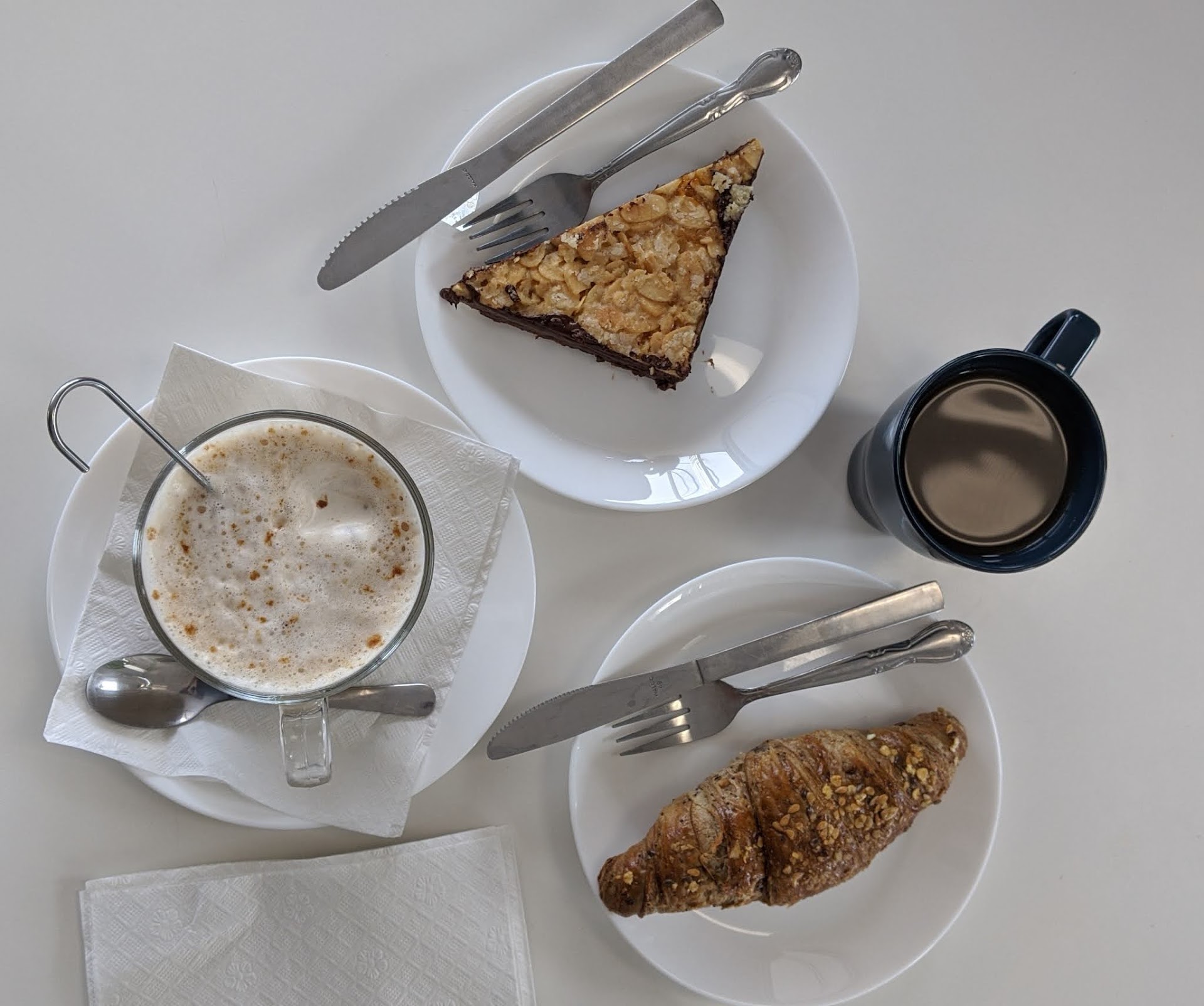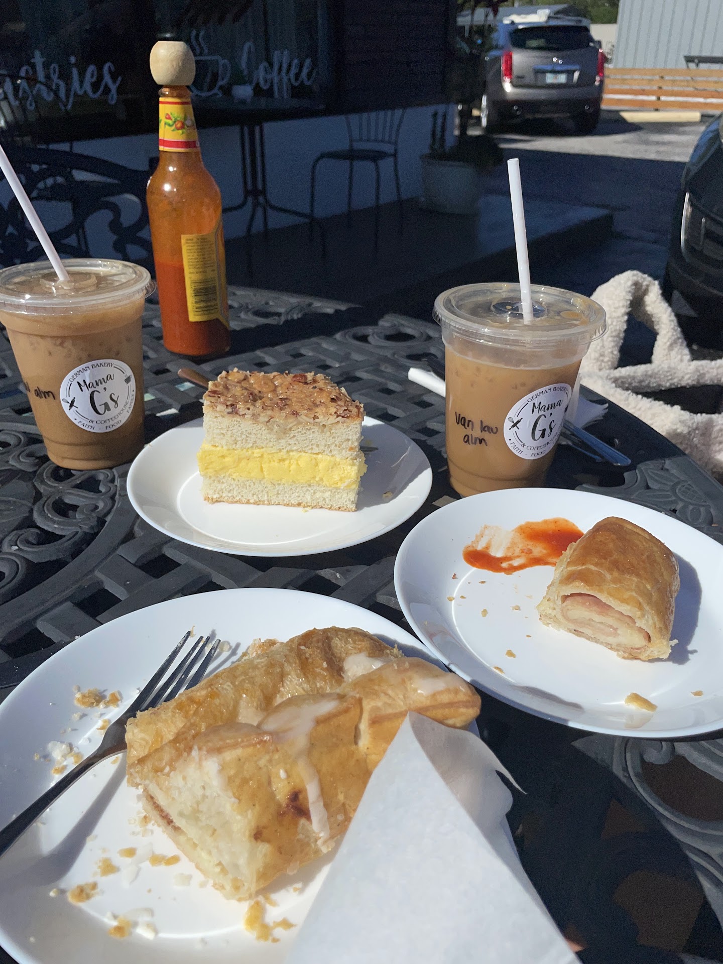 Read moreWow! What an incredibly amazing place! We ordered the Jägerschnitzel with spätzle (pork cutlet with german noodles) & added red cabbage as a side; their cheese pastry, nutella chocolate pastry, käsespätzle (german Mac n cheese), cappuccino and German cold coffee. The Jägerschnitzel had a delicious calm mushroom gravy. The breading tasted like it must have been fried in fresh butter it was so good! The red cabbage was on point and added a delight to the meal. Biting into the cheese pastry reminded me of a creamy Krispy Kreme donut right out of the oven when it's first soft and hot. The nutella pastry was a bundle of delightfully chocolate-flaky goodness. The cappuccino had a smooth darkness to it with all the foam you could want complimenting it with a gentle sweetness. They added a packet of natural cane sugar for me since I like my coffee a little sweet. The German cold coffee is the way to go if you need your sweet tooth fixed with a tasteful scoop of vanilla bean ice cream flavoring the bold smooth coffee. And all the ambiance you could ever want or desire in a cafe/diner. The calm music was inviting, there is a spot to chill and enjoy your coffee as you relax on the couch or your Littles can enjoy the kid's kitchen toy in the corner. Such a great place and I couldn't have had a more enjoyable lunch! We have been to many many german restaurants and I am also quite particular when it comes to pastries and this had the best of both worlds. Best german food I've had yet with so much...