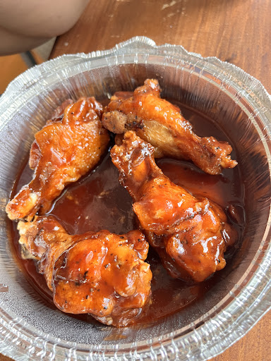 I ordered 5 bone in BBQ wings at 5:26 pm on a Tuesday night. Given the average cook time of 10-15 minutes, plus five minutes of saucing, putting in the to go container, I would assume 5:46 pm to be a reasonable time for 5 wings. I watched the line cook pull the wings out of the fryer around 5:40, put it in a to go container and sit it on the cutting board at his station. I then watched as he took raw burgers out, and hand pounded them flat right next to the cooked wings, cross contamination? The line cook continued to work on other orders as the wings just sat there. Around 5:50, he took the wings over to a steam table, put BBQ sauce on it, then sat the wings back on the cutting board. The wings sat there until he finally put a lid on the to go container at about 6:05. Did the wings get taken to the front register? No, it wasn’t until 6:08 that they were carried to the front register and left there. I reached over the counter and took my wings. Besides the very slow cooking time, possible cross contamination, and not putting them in some sort of warming station to keep them out of the temperature danger zone above 140 degrees, the wings were dry and not dressed well. I would eat at any other place in Liberty Place, I definitely would not recommend...