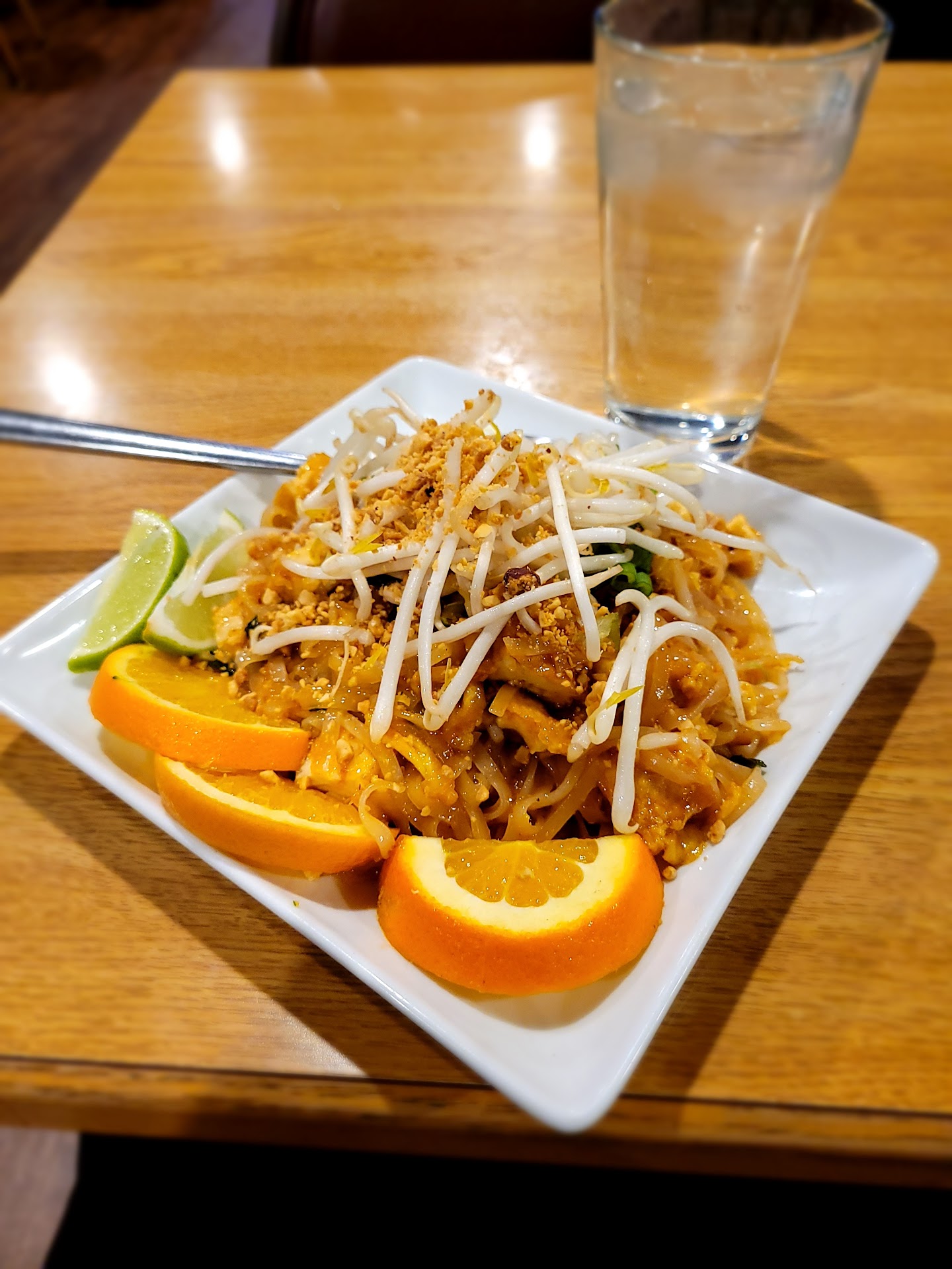 Read moreWe went here for dinner, it got quite busy after 6.00. We started with chicken satay appetizer, love the peanut sauce for dipping& chicken was cooked nicely. We also got but butterflies also. We ordered beef pad Thai, beef pad khee mao, and a yellow chow mein noodle dish. We had one family member that cannot tolerate any spice level, we were told the dishes started with a low level 1 spice... So that was hard for them to eat their dish. The yellow noodle chow mein dish had a fresh flavor, lots of veggies. The beef was velveted nicely. I think the pad khee mao was the better of all the noodle dishes, the flatwide rice noodles were a good texture & fresh veggies. I do prefer to have more sweet & salty sauce than this dish had. I think the spice level it automatically comes with was dominating this pad khee mao dish. The level 3 spice level on our pad thai was extremely hot and drowned out the sweet, salty, sour pad thai sauce flavor profile of the dish. Maybe start with a 1 or a 2. Glad we ordered a thai iced tea to drink. The dishes were big, had leftovers for the next day. There was a huge family eating in there, they had a lot of traditional chef specials on the menu, Maybe we just didn't order the...