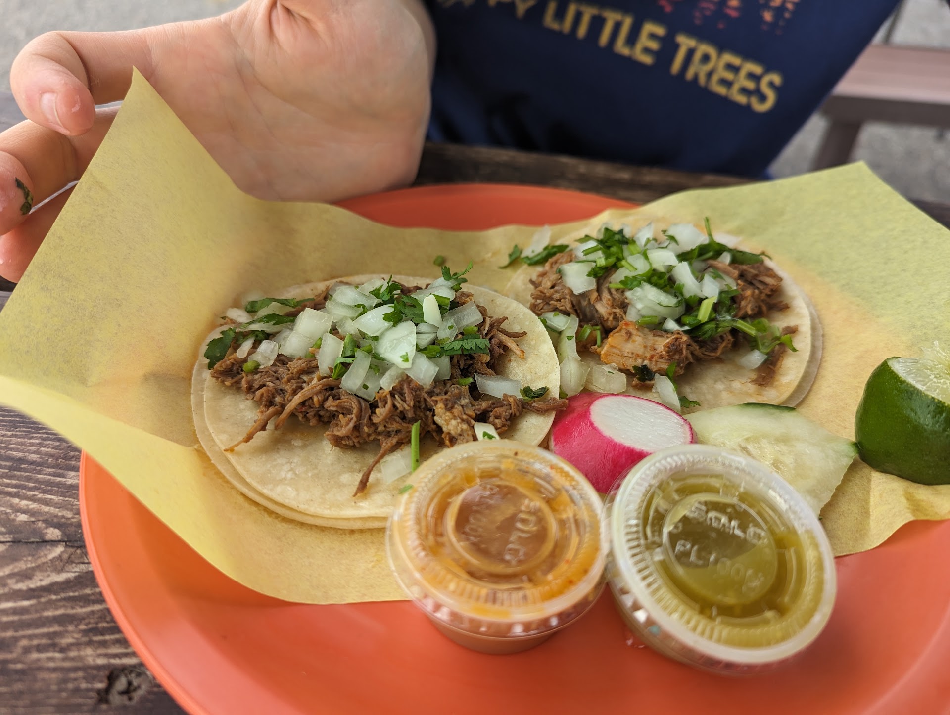 Read moreWould come back for the birria tacos because they had tender beef, gooey cheese, and 2 would have been enough for me. I couldnt finish the third one I ordered. The torta ahogada did have unique flavors, it came with carnitas and many interesting toppings. The burrito was huge, but had huge hunks of lettuce, would have been better shredded. A lot of red onions, rice, and beans. My kid forgot to order no onions. That is on us. The chicken taco came on a good sized tortilla & the meat had a good flavor. I tried the habanero salsa, needs a shake, as the spicy pieces fall to the bottom. It needs a little more kick or flavor like lime or salt.? They had the cutest little seating area next to a nursery, by Goodwill on Columbia Center. I will say they were super friendly & welcoming. They are not fast food, but they give you a beeper to keep with you to notify you when your order is ready. The packaging was superb & nicely done. Perfect for transporting. Cute...