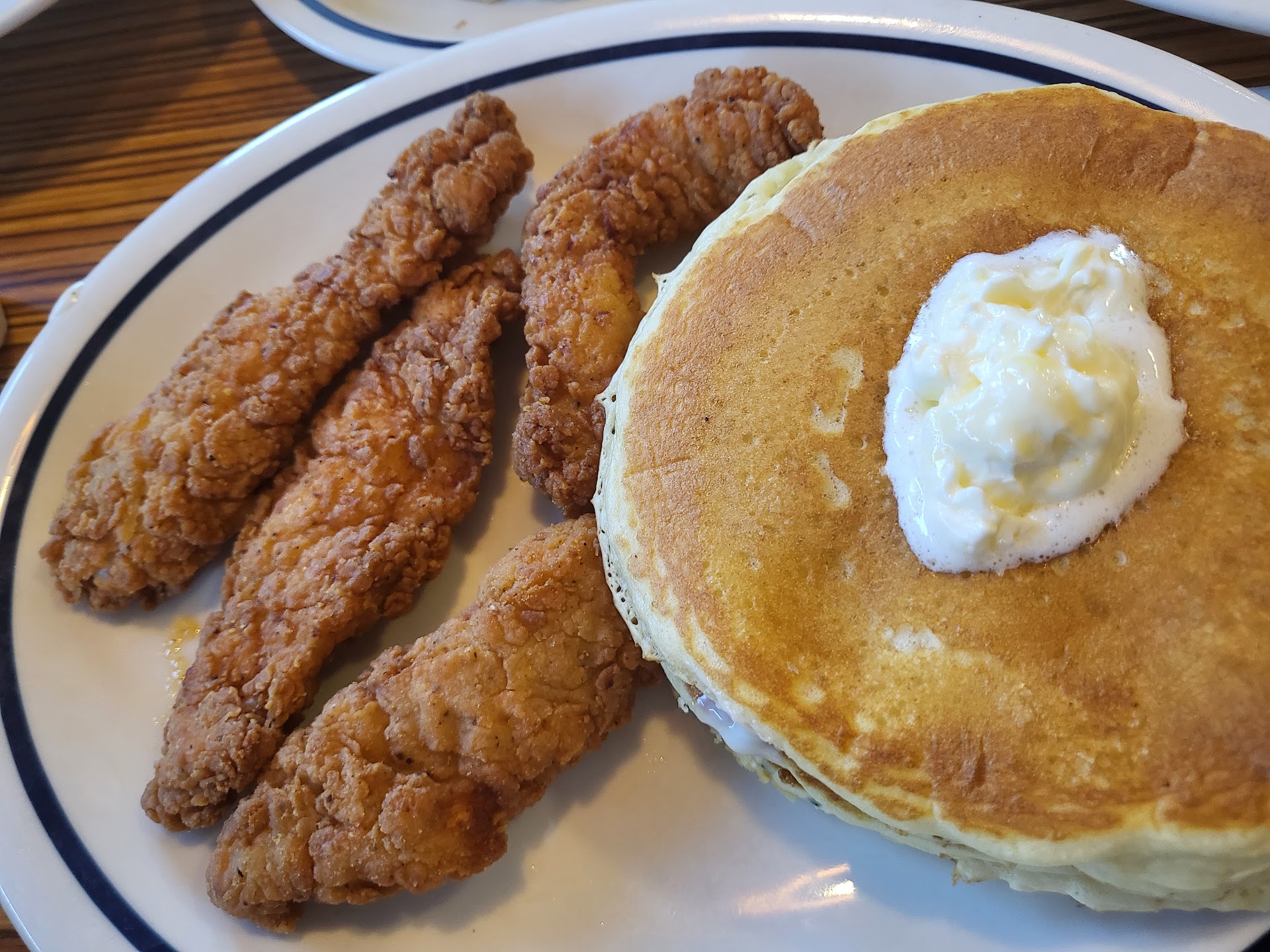 Finally tried IHOP for the first time ever. Was NOT impressed and most likely will not return. If I'm paying you to provide me a good (not decent)but a good meal you'd best do it right the first time. I'm not talking even awesome food since these kinds of restaurants rarely are capable. BUT. First thing we noticed was the parking lot was packed, so felt like we were in for a fantastic meal. Really? Could that be possible? Walked in, packed. YAY for us, food must be awesome! The waitress had sweat poring off her like rain. I felt right then we should leave. But she was very friendly, so, bless her, she's overworked at the rush lunch hour. Ordered steak and eggs (O/E), no choice if we'd rather have potatoes or toast, forced to take the hotcakes. Vegetable omelette w/toast. A side of french fries and fried potatoes. Wait. Wait. Wait. Food arrives. Toast is burnt like a charred piece of wood. Eggs over easy are fried with the yolk hard and the whites with crispy edges. YUCK. Both sides of potatoes were a total RIP OFF! Like a hand full from a small hand no less. Over salty. The steak was cooked well done as ordered but tasteless. Only 'decent' thing was the vegetable omelette. We basically halved the omelette, halved the steak(with lots of sauce) and had a few bites of the chocking dry hotcakes and left incredibly dissatisfied. We aren't "Karens/Kens" so we did not fuss because I feel the best way to make a statement is to never waste a dime in a place that is mediocre. Who in their right mind sees burnt toast and thinks it's edible? How is it sooo many things in one order came back so messed up? The message I got is they just don't care about customer satisfaction. So be it. I cannot see how the place was so busy except to say coming from a large city where great food is a must, otherwise people move on, no time to waste eating yuck food and worse paying for yuck food. Thinking small time folks settle way too easily. That or they've never had really awesome food and service. I'll take Shari's, Denny's or even Original Pancake House (none great but none as bad as this place) any day. Denny's is another place that's as stingy AF with the fries. Dairy Queen too. So if you're ever in the mood for french fries pass on these two. I guess when looking for a tasty and filling breakfast, food prepared as requested we'll stick...