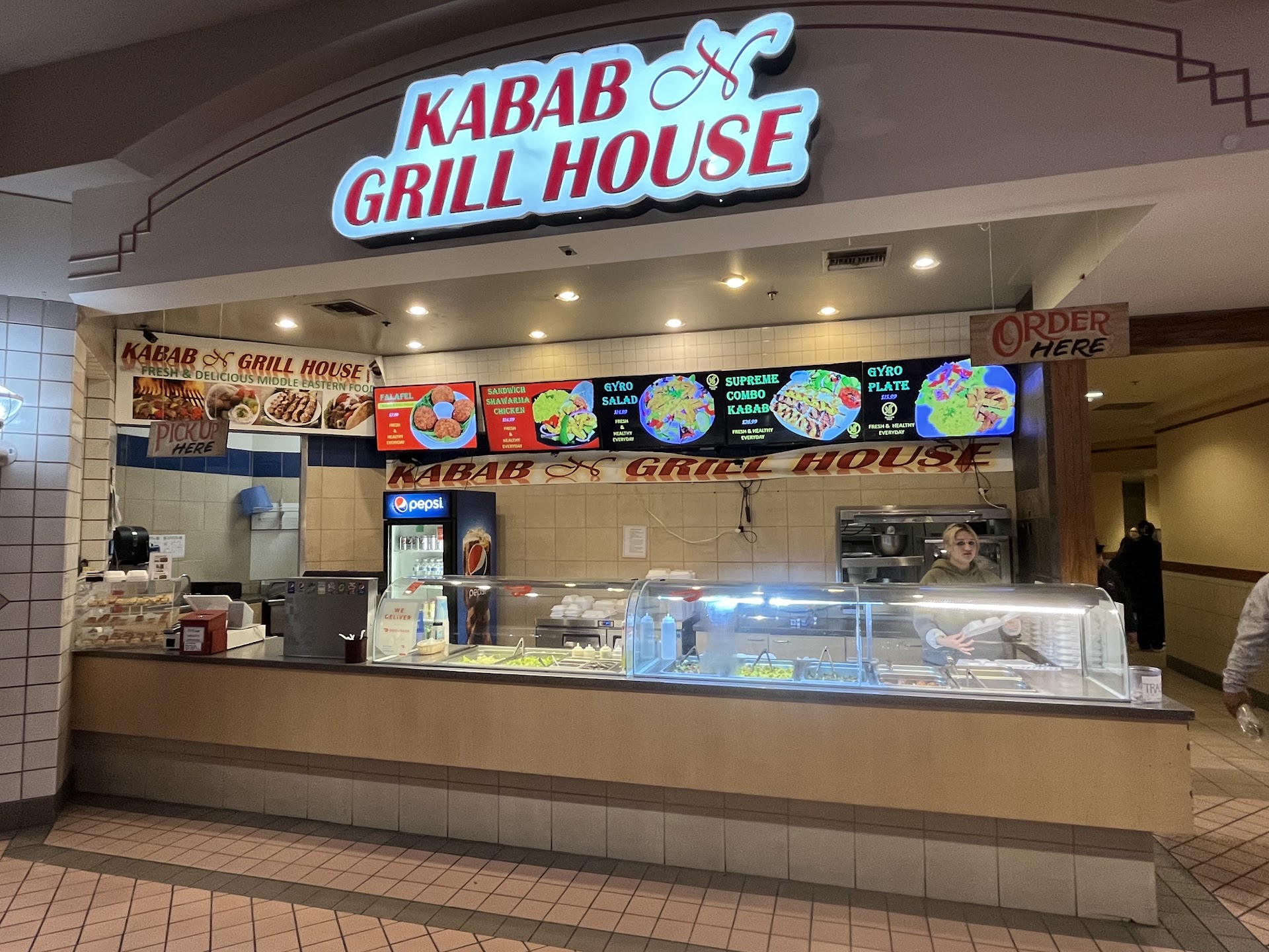Server was very friendly and helpful, the owner was, too. Nice people. Rice wasn’t fully cooked (needs more water) and the chicken was dry from being on the steam table too long. The pita bread was store bought. I had hoped for a little more authenticity but for a food court it’s decent (although still too dry). I might try them again but will definitely ask for more tzatziki sauce if I do. The hot sauce was the best part of the meal - flavorful and packed some heat. I would like to try them again when the food has just been made fresh, will probably come back earlier in the day, like around noon (I had dinner...