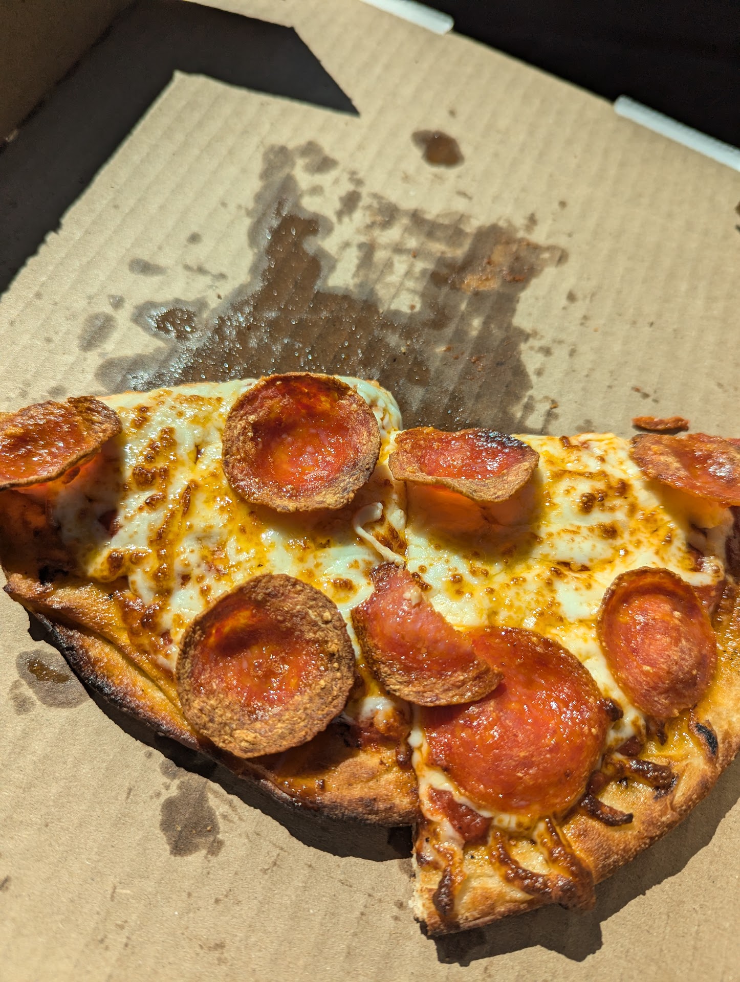 Read moreI understand why high schoolers like this place. It's fairly cheap, the pizza comes out fast, and the portions are big for the price. The employees there are kind and seem happy to be there. However, the pizza was really nothing special. Yes, it came out in just a few minutes, but speed does not equal quality. My pizza was a tad on the burnt side, and the piece I had that wasn't burnt was just okay. It's clear that the ingredients are not quality. I'm glad that the high schoolers have a fun place to...