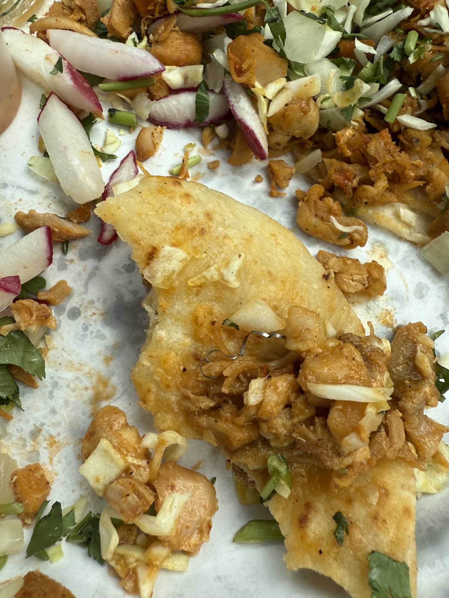 They have an assortment of salsas and we wish we had asked for one of each so we could have compared them. The salsa verde was very light and the peach habañero was sweet and unexpectedly mild.