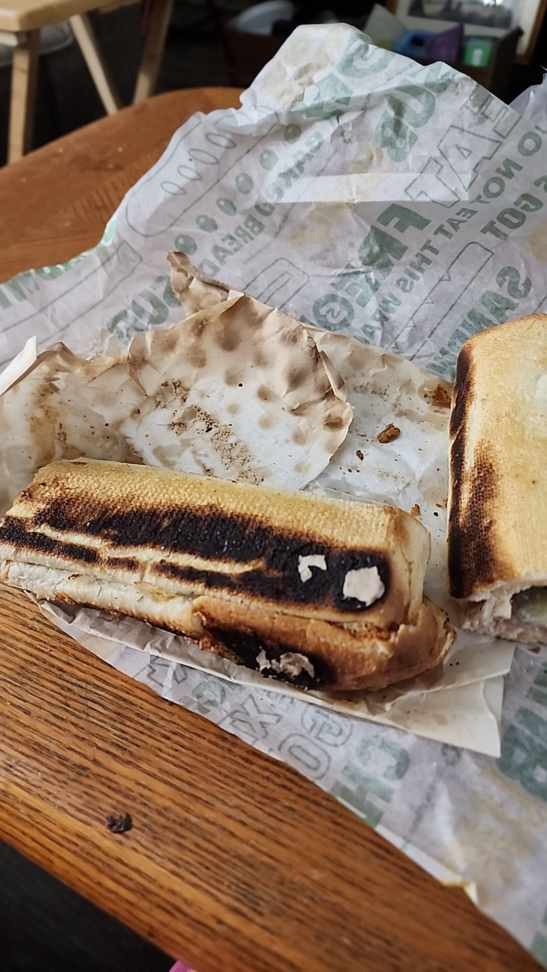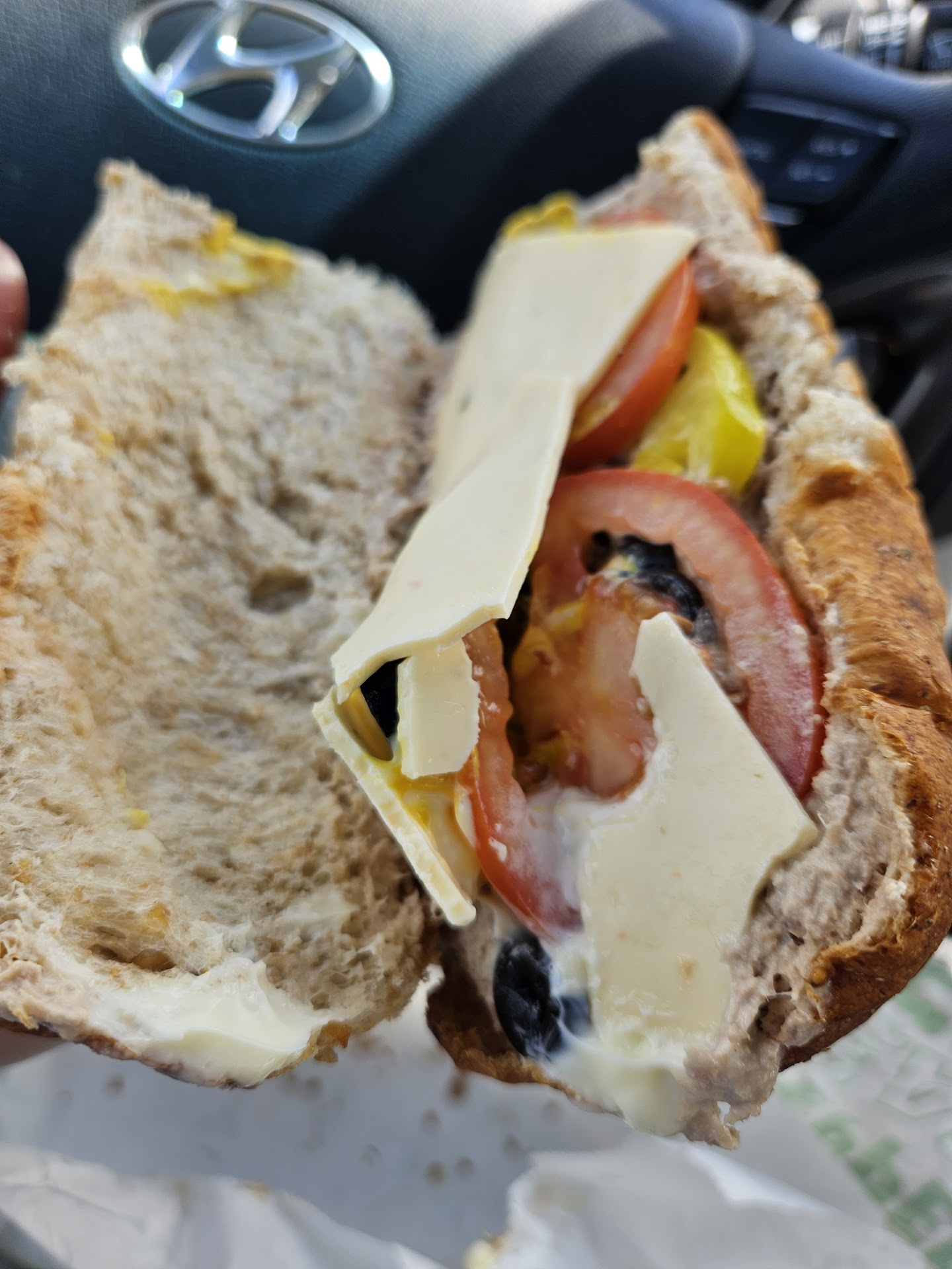 I ordered a 6inch tuna sandwich with 4 veggies and cheese. I didn't order it toasted. The bread was crusty, not much tuna itself, missed the lettuce. The bread completely closed around the toppings...