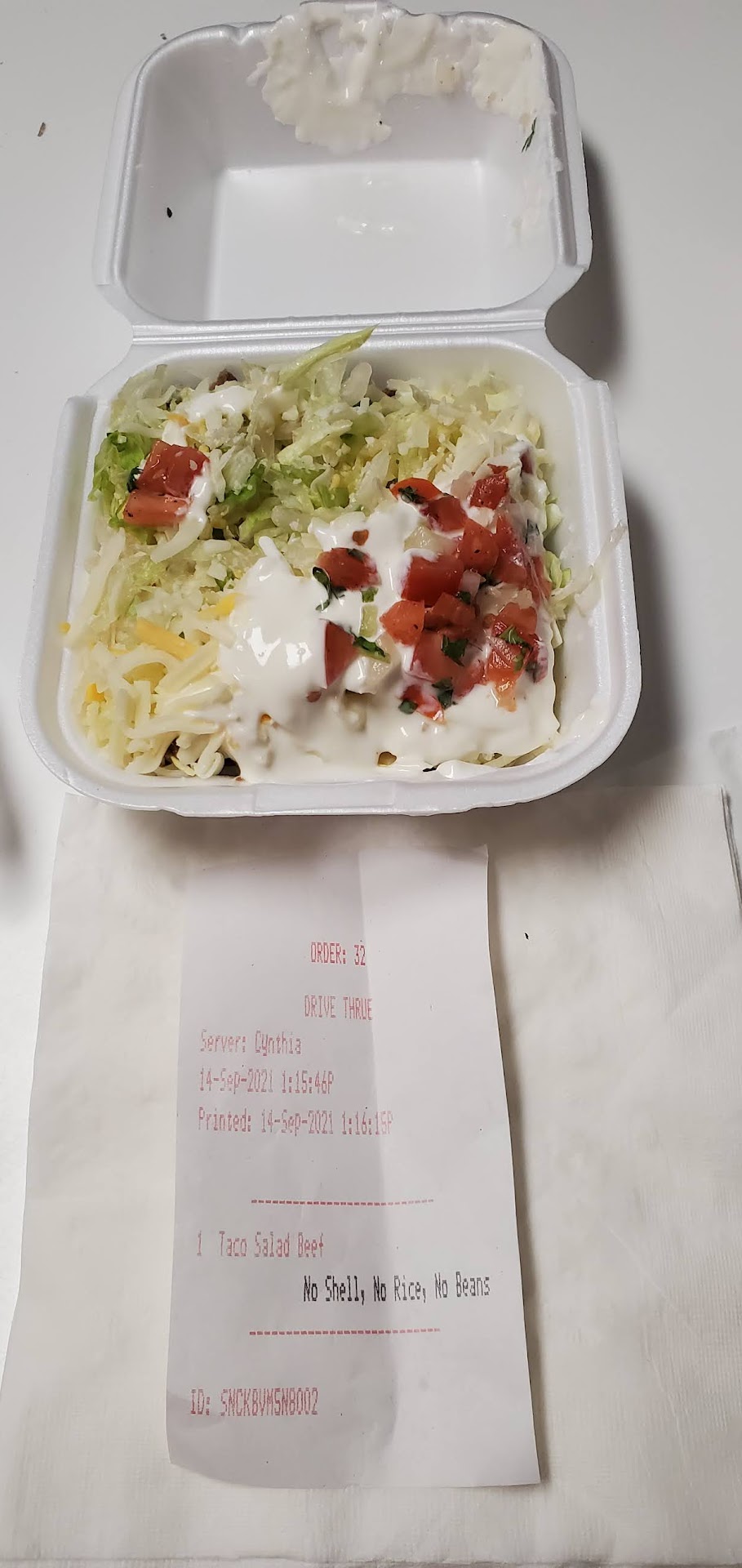 I have been a loyal customer ever since they took over this location from Chapala Express. They have always had the best customer service and best food. I am an office manager and when my office has special events I always have ordered from them "Shop Local". Our office is not small either. My Staff and I frequent this location a few time a week for drive through lunch. I always get the same thing for years, "Taco Salad, No shell, No Rice and no beans" The friendly face (guy) at the window knew my order by heart and would always say "The spicy salsa, Right?" It was always $9 and I would always tip $1. The Cook was always a very nice older woman. Today was the opposite experience. I placed my order as I always have. There was a new (gal) Cynthia at the window. She took my payment for $9 and I gave her $1 tip. She then closed the door. I did receive my order promptly but when she gave it to me it was in a Styrofoam container 1/4 of the size I have always received. She closed the door. I was a bit confused and waited for her to open the window. I explained what I have always received and she got the cook who spoke Spanish (not the original older lady) and Cynthia said the cook said that was what I get for the same $ now. I told Cynthia this was terrible customer service and I was not happy and she was losing a loyal customer. She shrugged her shoulders and said "Sorry, I just work here. I am not the cook." I told her I would not be back....