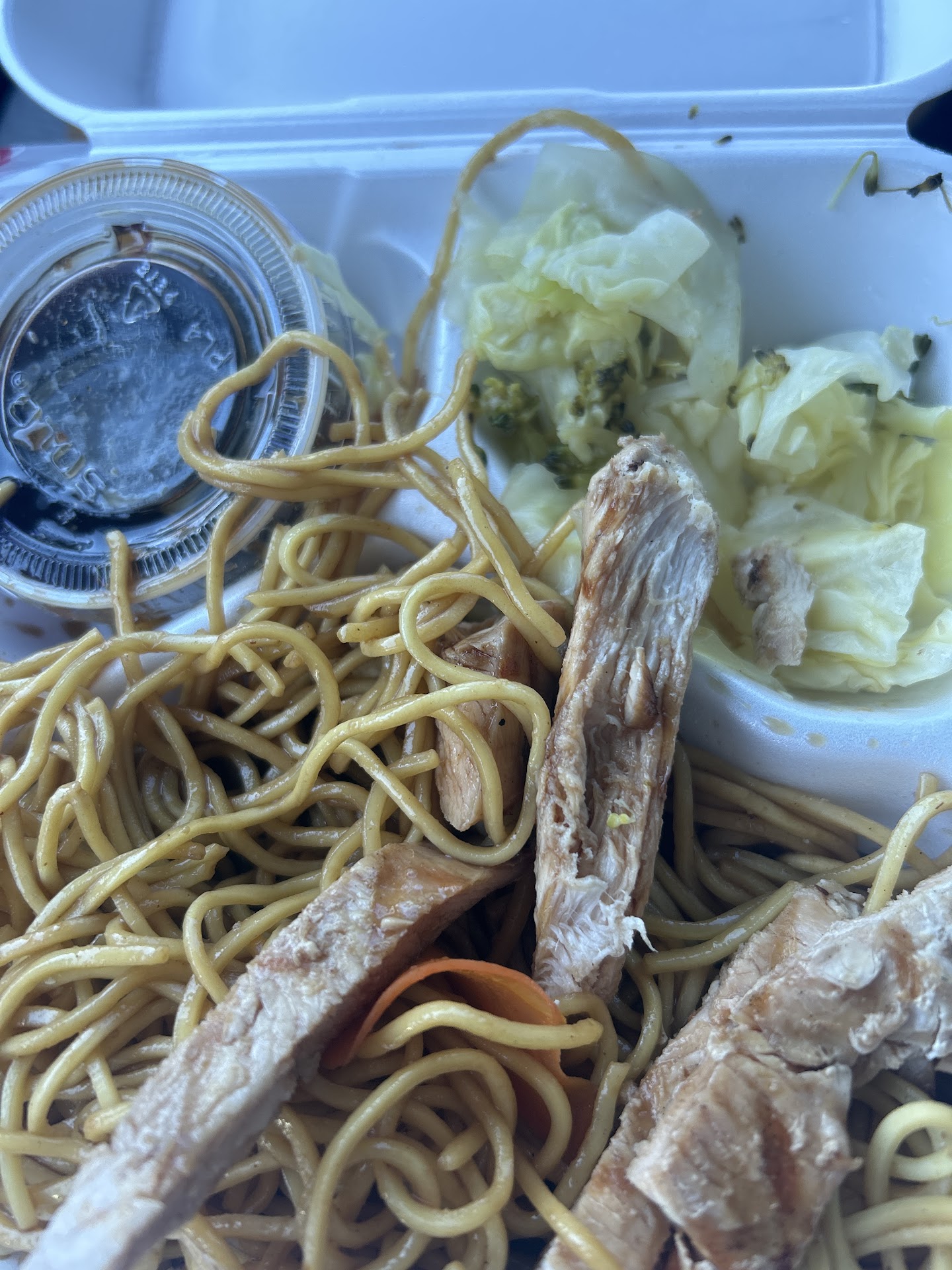 The cost was ridiculous at over $17.00 for 1 small meal. The yakisoba was hard, with a strange garlic flavor, no veggies in it, the chicken was rubbery like it was just microwaved, and the cabbage stuff on the side was over cooked and soggy. They obviously warmed it all up from a batch that was already made because it was ready for me in less than 5 minutes. They have an “award” from 2022, and it’s probably because there are no other teriyaki places around. It took everything in me to eat some protein but it was so chewy that I had to stop because it was bad! Chicken should be moist, and easy to swallow, and I had to spit it out.