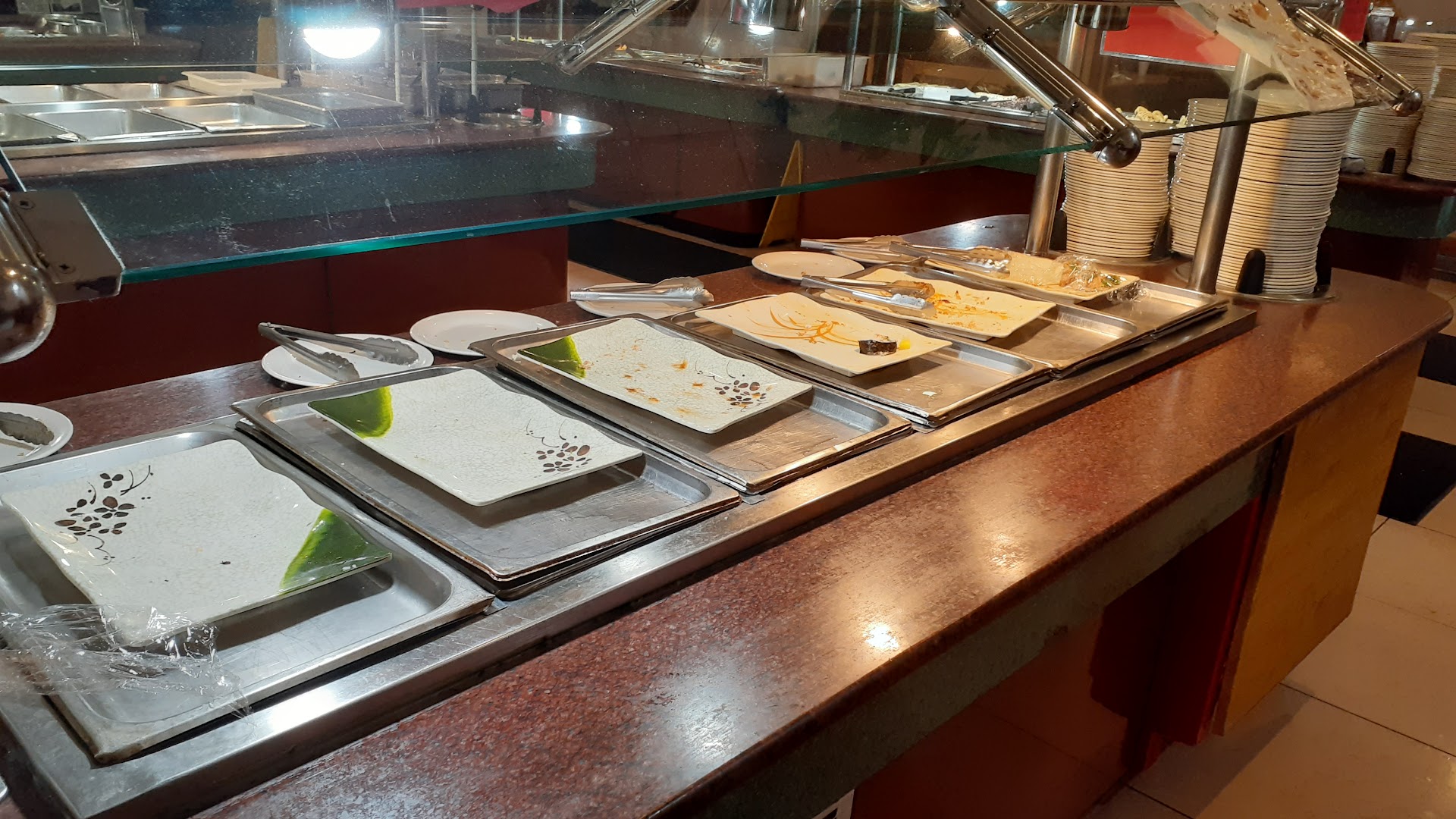 I understand that buffets are sometimes busy and it takes a lot to keep the place clean but there was a mess on the floor 2 booths down from me. A server looked at it walked over it atleast 4 times while i sat and ate. 2 of the buffets never got wiped down while when i went back 3 times. No one seems to care about what it looks during the dinner rush.