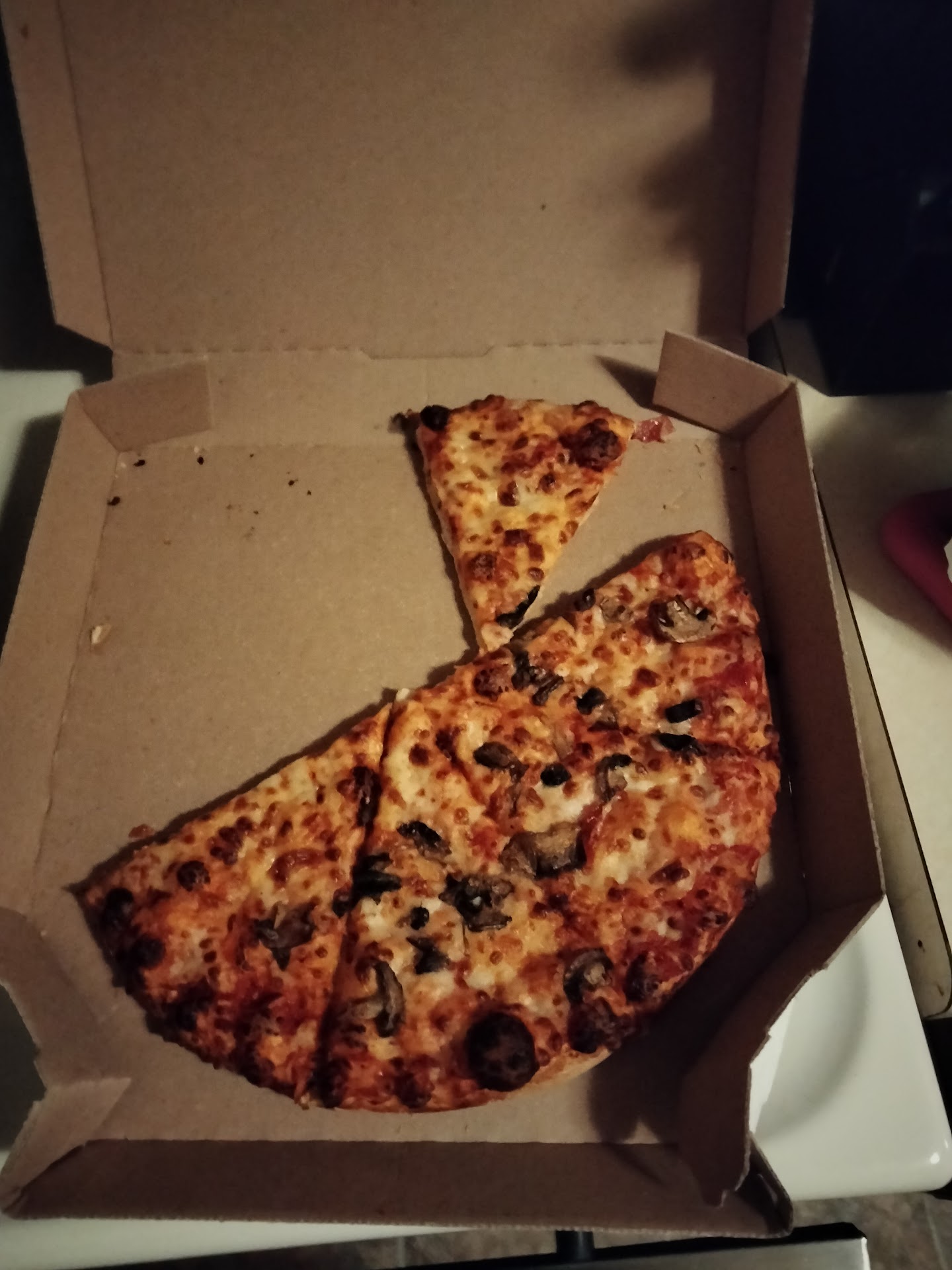 The bread bites and pizza is drowned in Greece dripping through the cardboard enough to give you a heart attack