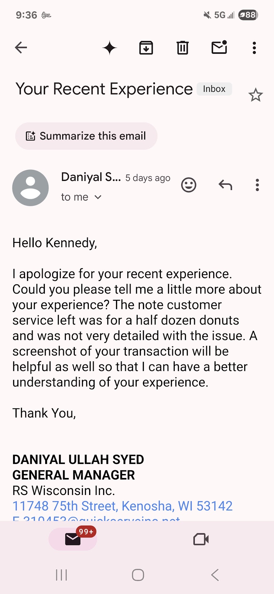 Horrible service from a manager for a simple request. We came here 1/24 @ 3:53am and ordered two drinks. When we received our drinks my husband asked for a straw as we did not receive it as well as napkins because there was junk on the cup. She handed him the straw angrily and closed the window. He waited and politely asked for napkins and the receipt. She handed him about 30 napkins very rudely, my husband stated “you don’t have to be angry, I just want to clean my cup and may I please have napkins” she shut the window as he was talking. He wanted for her to open the window again and she was extremely livid at this point my husband asked for the receipt and she stated she gave it to him “he stated he didn’t have it and he does need it as well as her name” she stated “I’m a manager here” my husband responded that does not matter, I need your name please and my receipt. She stated she couldn’t provide the receipt and they were a privately opened company so her name doesn’t matter. We stated we are not leaving until we receive our receipt in which she stated “I would need to re-ring the order” we stated, please do so” she then closed the window and called for a gentleman to assist her. He then asked why we needed the receipt in which we stated “because we made a transaction and need it”. She chimes in “the transaction is already completed!” The gentleman provided the receipt and stated her name is Renee. The receipt stated a name of Denitsa. I would not want this person working in my establishment serving my customers especially as a manager “leading” my team. Crazy to me this manager or anyone for that matter would treat someone like that. You are in the line of customer service… that means serving customers and we asked for two...