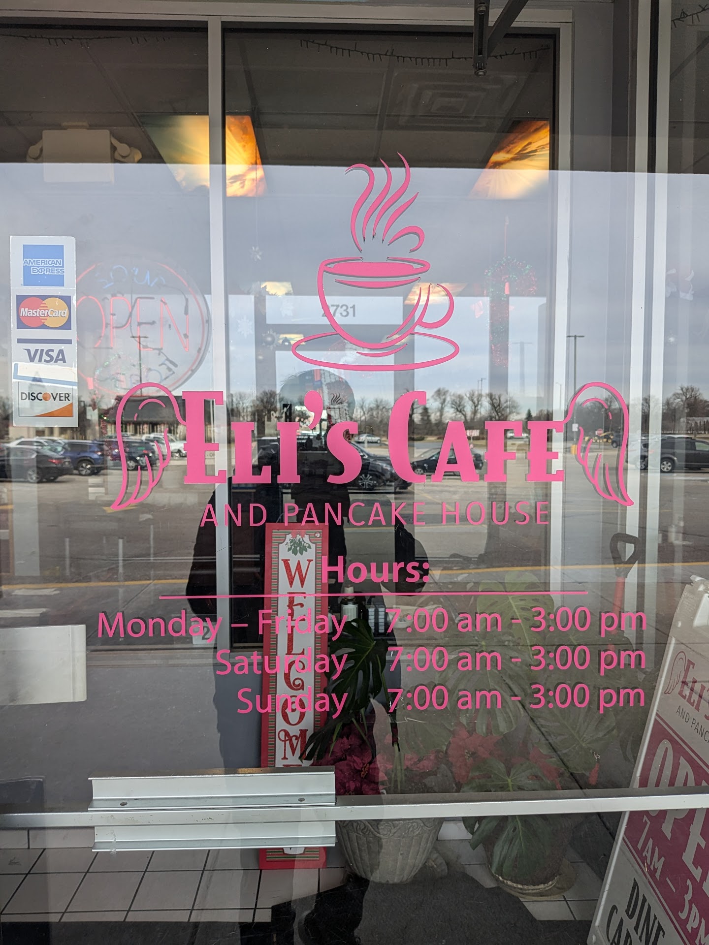 I stopped in for a late local breakfast on a Sunday because of the great reviews, and boy did they meet expectations! The place is clean and the staff was so friendly, and the food was perfect!! It really looks like they are busy all the time. They are only open from 7:00 am until 3:00 pm most days, and when I left, 80% of the booths were filled. I got the No 2. Eli's Slam Combo and it was perfect! The french toast was light and fluffy, the eggs were cooked perfectly, "over medium", and the bacon was crispy! Side car of orange juice and water, they didn't let my cup go empty. I can imagine the same if you got coffee. A 16$ breakfast, with tip, got out of there for 20$ for one person which is average for a sit down breakfast in this area. The staff was very attentive, and two or three people asked if I needed anything more while I was eating. That was so nice, especially with how busy it was getting. They actually could do with some more tables. They have the room for it. I look forward to trying their other dishes. This is a great local sit-down breakfast and lunch place, but I do believe you can get carry-out as well. Of course there is plenty of parking in the "Glenwood Crossing" parking lot, and plenty of good eats to be had at Eli's Cafe and...
