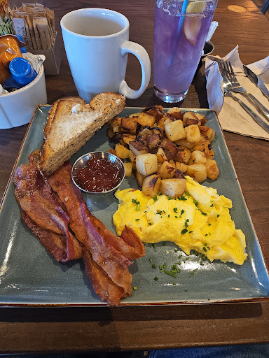 Our server, Brandon, was phenomenal. Attentive, friendly, and so knowledgeable about the menu. The food itself? Absolutely outstanding. Everything we tried was a 10/10. We had the smoked salmon frittata, the Floridian French toast, a side of biscuits and gravy (the fluffiest and yummiest we’ve ever had), and their unbelievably good Million Dollar Bacon—sticky, sweet, and totally worth the hype.