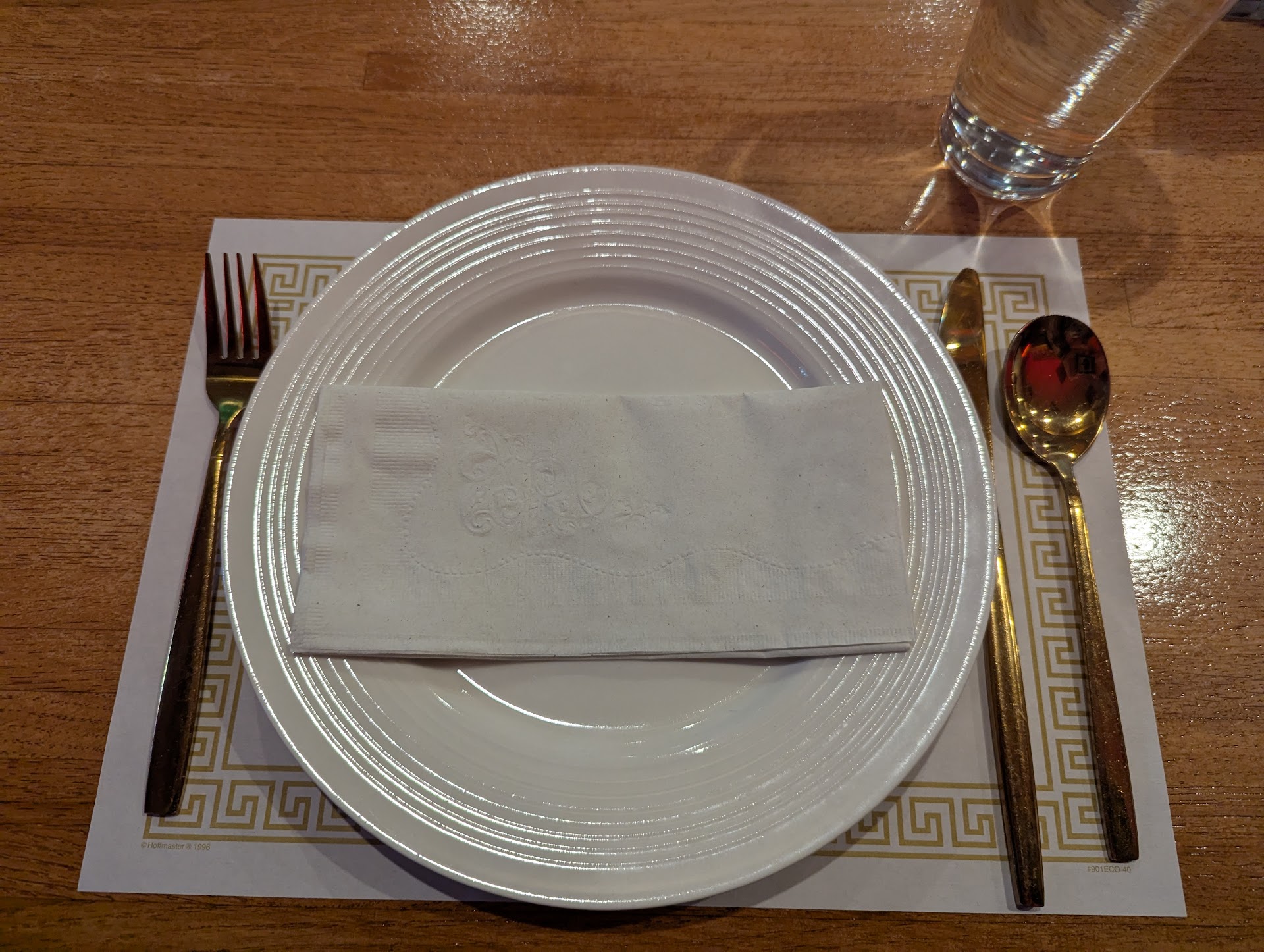 The tables are placed with golden utensils and a neat plate that makes you feel you are eating a fancy dining hall meant for the upper class. Decorative adornments line the walls that helps you feel you are escaping Wisconsin for just a bit.
