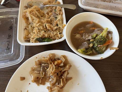 Read moreStep back in time… to 2020. This Thai spot is basically a living Covid museum. From the sneeze shield guarding the register to the faded social distancing arrows still stuck to the floor, it feels like the pandemic never ended here. And apparently, neither did their business model. The waitress casually explained that they made so much money during Covid running takeout-only that they decided, “Why fix what isn’t broken?” So now, you can technically sit inside, but don’t expect a real dine-in experience. Cue my disappointment when our food arrived — on paper plates, with utensils that looked like they were stolen from a middle school cafeteria. I tried to stab a piece of chicken and my fork bent like it was auditioning for a magic trick. Nothing humbles you faster than realizing your meal is stronger than your silverware. And let’s not forget the uninvited garnish: I’m fairly certain I spotted a dog hair nestled into my dish like it was part of the recipe. Authentic? Maybe. Appetizing? Definitely not. The food itself? Surprisingly decent, but trapped in the tragic irony of being served on kindergarten craft-day supplies. If they’d just trade in the plastic forks for something that can actually pierce meat, this place might stand a chance at graduating from “Covid time capsule” to...