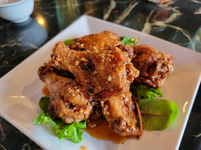 We also ordered the chicken wings from the appetizer menu (picture posted). Those were really good. It was like Korean Fried Chicken, Vietnamese style. It had a sweet fish sauce glaze slathered over it. Crispy, sticky, sweet, and savory. Only complaint is the price. The wings were pretty small and it was $13/6 wings. I was expecting 6 FULL wings for that.