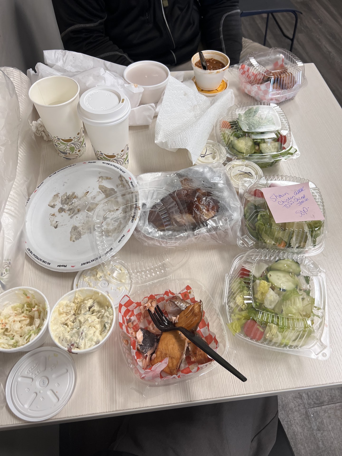 Read moreThe lady in the front who took our order seemed nice enough.... she seemed forgetful with giving people their drink cups... as well the one request to our order we made of putting the sause on the side was looked past and instead sauce was puton the ribs anyway and it wasnât offered to be corrected at all ... probably to cover up the bad ribs.... some people need to keep track of there sugar intake so unfortunately that wasnât very well accomedated but, besides that I think she really tried to engadge well with customers thatâs probably the only good thing I have to say about this place though; it took at least 30 minutes to get our order, an order which cost over $50 including the nice tip which we ended up regretting, I personally feel ripped off quite hard by this place ... 5.99 to add a drink and a SMALL side was definitely not worth it! the salmon sandwich was like 16.99 and had barely any salmon it! honestly felt like I was eating bread with a hint of fish :/ for the price you expect an actual piece of salmon not a salmon salad! the dip was incredibly over salted aswell! the staff seemed to talk up the salmon but I was truly unimpressed and felt like for the price the lack of salmon and taste really was and unpleasant experience.... my Husband got the ribs they have signs all over boasting best bbq... really the ribs were tough either over cooked, sitting too long or even more likely previously frozen... they were hard to chew through and terrible cuts! the bbq sauce tasted like overly sweet ketchup.... if these guys have such high ratings I feel like me and my husband, which keep in mind are not really chefs could go open a 5 star michelin kitchen :/ It really makes me feel bad for my husband as he talked this place up himself... he was so excited to go and I was excited for him! He hasnât been there in about 20 years... he ended up leaving disappointed he has worked with meat and seafood for his whole career and says these are the cheapest cuts of meat they could probably get ... we could have gone to red lobster or P.F. Changâs and spent $50 with tip and gotten something actually worth it! itâs really terrible bbq wonât be back no wonder they have a sign what happens at caveman stays at...
