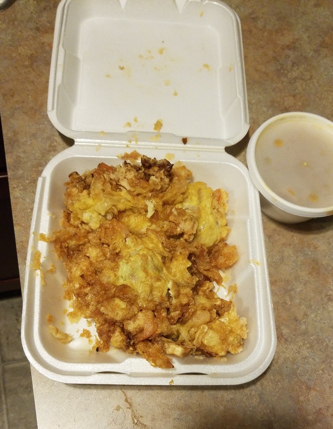 Initially, with relatively good reviews of this place I was excited to bring my family here to try out the food. The atmosphere..boy where do I start? Black,dusty Cobwebs hanging from the ceiling and black mold growing on the corner of the ceiling above where the employees walk in and out of the kitchen area..We should have walked out after seeing that.Our appetizer came and I was just misinformed what exactly it was.Okay, MY bad.We thought that the wontons had cheese in them, instead they came out with no cheese and just a tiny piece of hard,almost beef jerky-type consistency in the middle of the crunchy skin. I politely asked the waitress if we perhaps there was a miscommunication during the order and immediately she had a bitter attitude and was defensive telling us to eat them and use the sauce (nearly dipping her finger in the sauce bowl pointing).We wondered what our entrees would be like..and we were of course were disappointed to say the least. My fiancé ordered the fried almond chicken and it came out drowning in thick,slimy(how my 7 year old described it) sauce.The chicken itself was permeated throughout in the oil they used to fry it causing the bread to be mushy and moist and tasting like old oil.The fried rice was so-so and just about the only thing we could bear to get down.The rest of our visit here we felt unwelcome and it was awkward because of the waitresses attitude. One star deserved. Hope we don't get food poisoning from...