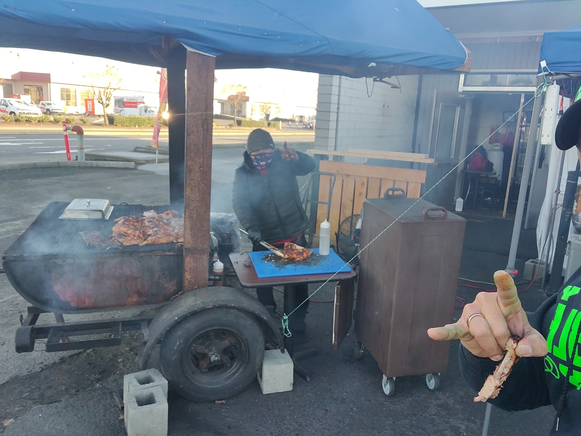 As others have mentioned, the smoke on the corner caught our attention and boy, are we glad it did. Our visit was 1pm-ish on a Tuesday. This was our first indoor, sit-down meal since COVID so let's start with that: they are 100% in line with current guidelines. Gloves, super-clean tables, masks, signs, spacing, single-serve condiments, all of it.