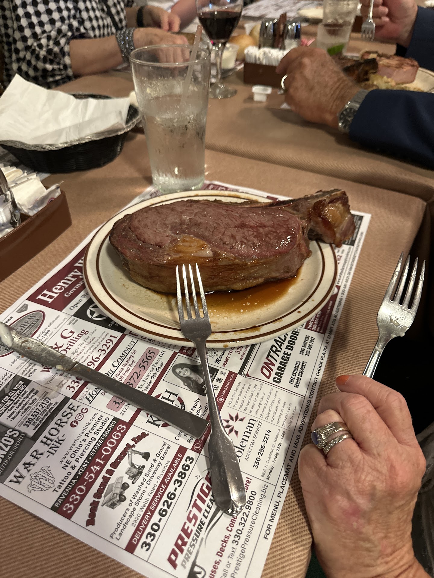 Read moreMy wife and I traveled from North Canton to Henry Wahner's Restaurant in Kent to celebrate our 34th Wedding Anniversary on June 2nd, 2018. We were excited to go and reminiscence, as we hadn't been there in many years. We thought it would be nostalgic and something special. Boy, we couldn't of been more wrong! First, the decor hadn't been updated since the stone age. But, no big deal, the food was gonna be great! Right? Wrong! And, by the way, don't go by the website menu prices on the internet. They were stated much less than the actual in-restaurant menu. I guess they didn't feel it necessary to update the menu prices either. But, no big deal, the food was gonna be great! Right? Wrong! Although the prime rib I had (at the higher $29.75, one of their supposedly house specials, while supply lasts), was a large portion, it was half fat and gristle. I could barely manage to cut through it, so eating it was even more of a chore. When I mentioned to our waitress, and pointed to the plate of accumulated fat (in a second plate, no less!), she said its always like that?! Really? My wife had the sirloin tips with mushrooms and onions. Again, not a good choice. Although, the mushrooms and onions "were" tender. But, not the steak. The bill came, and we found out they don't accept credit cards, only cash or check. Good thing I had a check in my wallet! Wasn't expecting to pay $60+ in cash that night for a meal. So, we contributed it all to just a bad choice by us, and a very bad dining experience altogether. Needless to say, we won't be going back. Wow! It was...