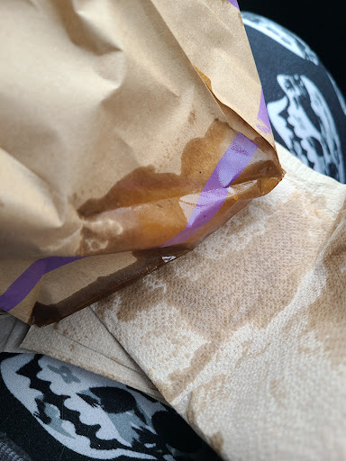Read moreHusband and I were in a rush and felt like breakfast sandwiches so we hit up the drive-thru. Order was placed, staff member working the window was excellent, food came super fast, no problems there. When my husband hands the bag of food to me, I set it on my lap and instantly felt the sting of hot oil on my leg. The oil had already soaked through one corner of the bag when it was handed to us and was still hot enough to burn me (thankfully it was minimal contact and moved it quickly, so I'm okay). We also, thankfully, had lots of extra napkins in the car. I placed those between the bag and my lap... the amount of oil that soaked through was HEINOUS. Guys, please, if you're going to make hashbrowns to order, make sure you've thoroughly drained them of oil before bagging. I truly don't mind waiting a few more minutes for my food if it means not getting burned and grease everywhere. These hashbrowns covered every single item inside this bag with oil, they were still soaked and soggy by the time we got them out of the bag. It's fast food, I'm not expecting "clean eating" and fully aware it's gonna be greasy, but this was carelessness for the sake of saving time (and the drive-thru was not busy). Side note: can I please have some coffee with my cup of ice next time? Full to the brim with ice and...