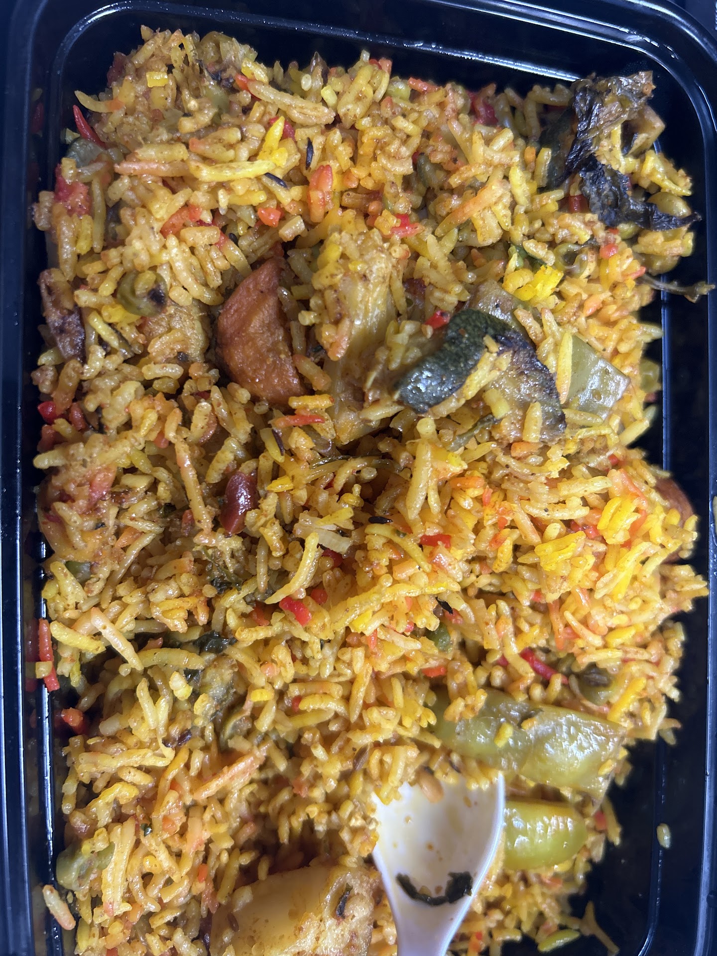 We picked dinner as we wanted to have Biryani. Veg Biryani is not in Menu so the guy at counter said he can get it, I asked for Paneer Biryani he said he can customize it. Now the thing is if I literally talk about Veg Paneer Biryani it’s nothing like a Biryani. It’s more like Spicy Rice in name of Biryani. In name of Paneer there were only 2-3 way smaller pieces. And just lots of chilly added, no taste of biryani. Apart from that the funny thing I noticed is they added Zucchini in it. Not sure from when Zucchini became part of Indian food as u can see in the picture clearly. 2nd biryani was goat, same feedback that biryani was only spicy, no flavor of authentic biryani. Didn’t find it was worth it to spend $45 behind 2 awful biryani. As I do remember the guy at the counter who’s sweet saying they have veg pulao. I think they gave me Veg pulao with lots of spice in name of biryani.