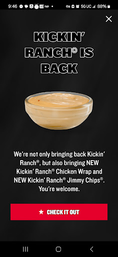 However, the rewards system is deceptive. On the app, it says you get one step closer to your next reward every time you place an order with the app. It turns out these orders must be "qualifying orders." Buried under multiple pages of text, your order must cost $3 in order to qualify. The side I ordered was the most advertised, yet below that dollar threshold, so my order wasn't counted. What's worse is that the app encourages you to order that side like that because another goal in the app is to do exactly that! Yet these orders do not count as "qualifying." I attached to this review the first three things you will see when you download the up. It's just plainly deceptive. I will not be returning again.