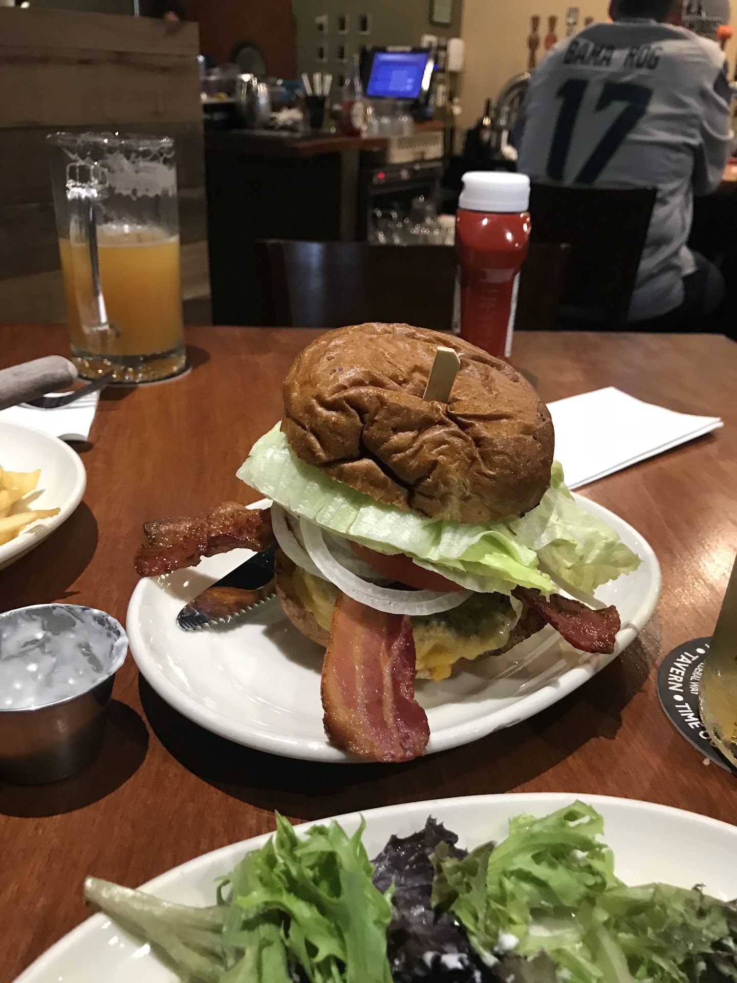 The bartender a taller dark haired Gentlemen served what seemed to be FULL glasses of Apple Crown.