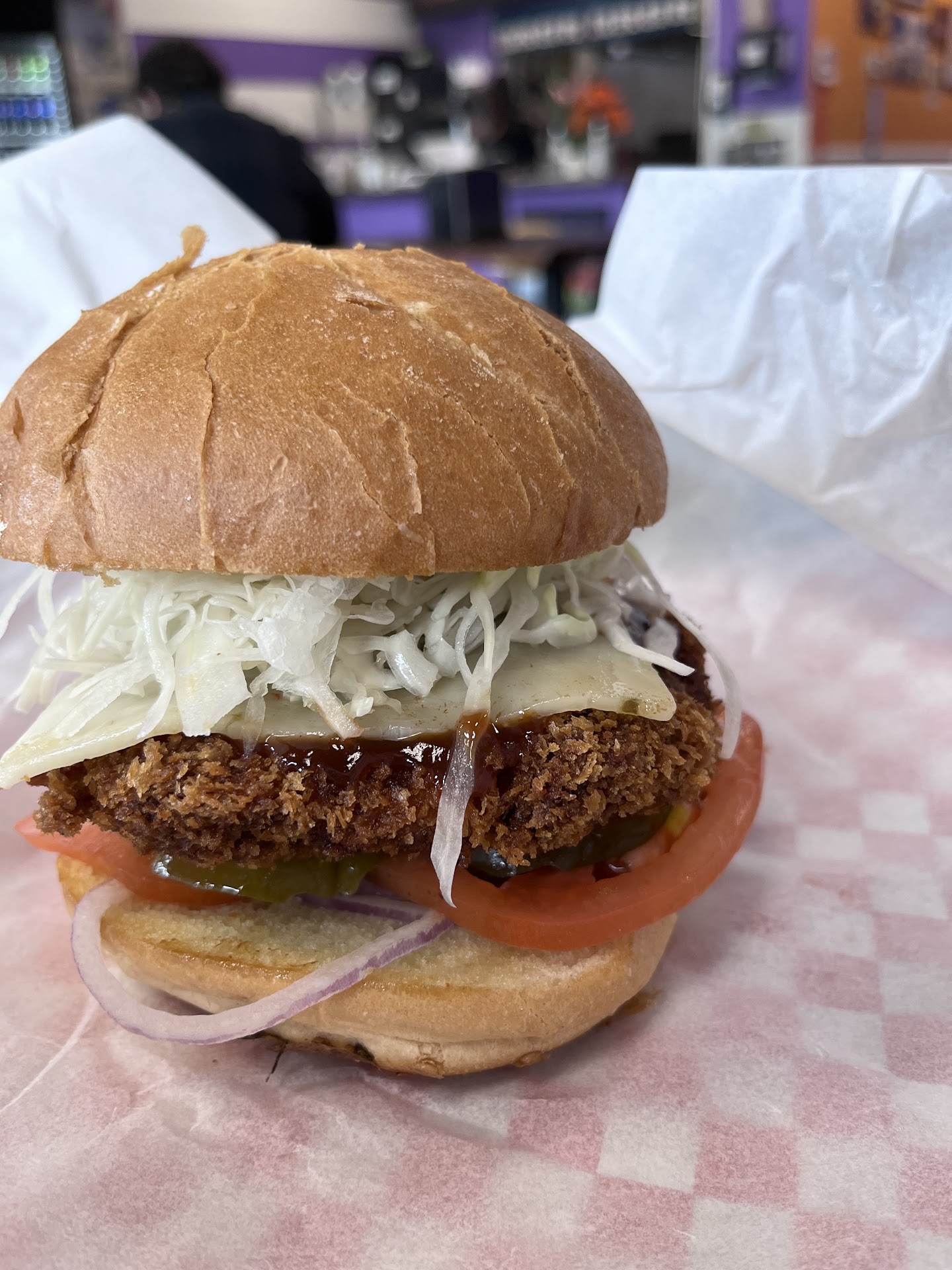 As for the breaded hamburger. I'm not so sure I like it. It is different, but it's harder to eat then a regular hamburger of the same size. It falls apart. I do like the sauce they use on the Godzilla and the toppings.