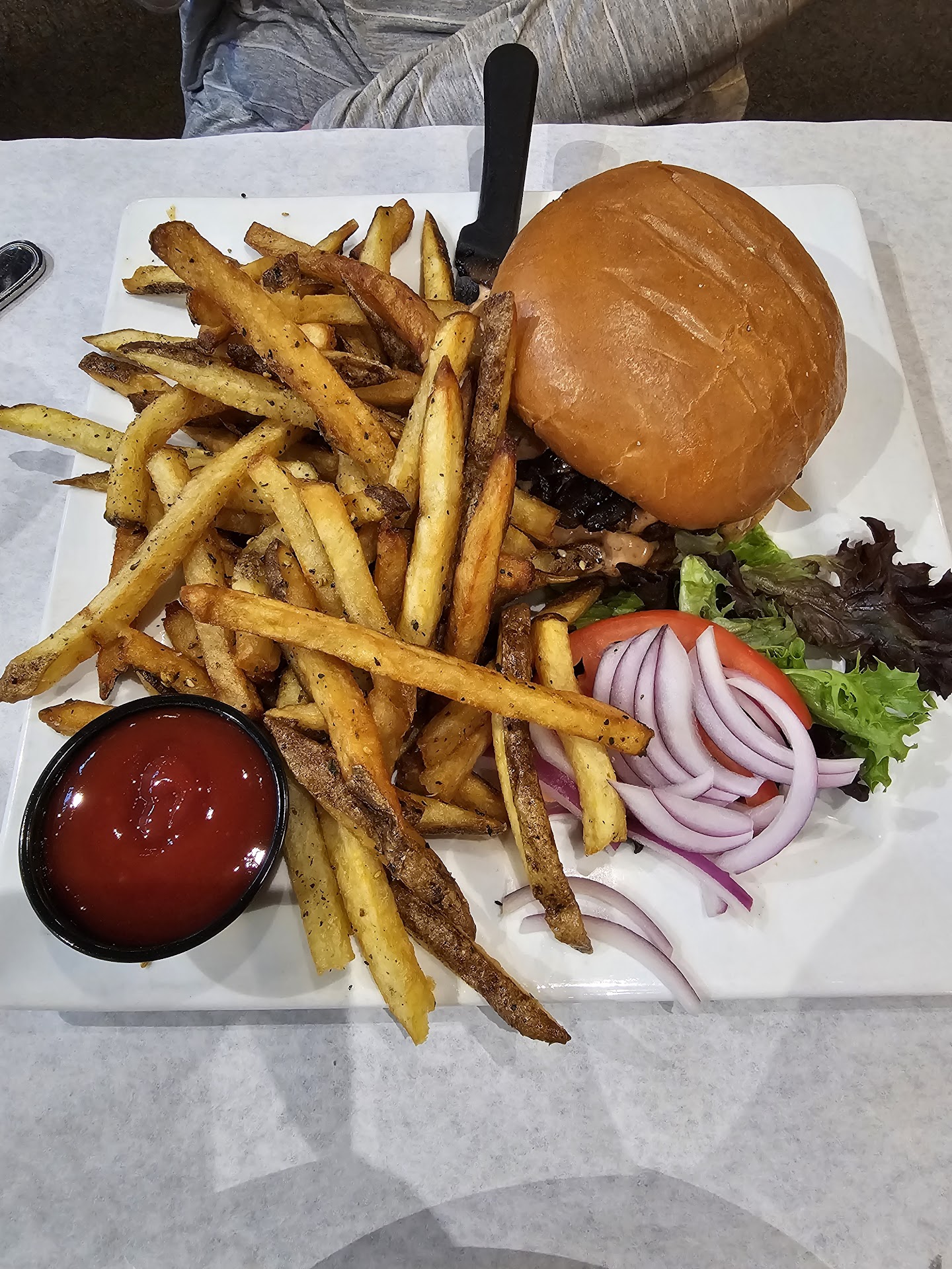 Our host was excellent. He greeted us in a friendly snd professional way. We wanted to sit outside, and he took us to a beautiful outdoor table. Our server was also exceptional. He truly knows the menu and how each item is prepared. I am on a temporary, but very restrictive diet. I only had to briefly explain, and our server said he completely understood and that it was no problem. My meal was truly outstanding. I had salmon with a heavenly roasted red pepper sauce and my hubby had the Chicken Shwarma (sorry if misspelled). We are both still raving about how incredibly delicious it was ... and how fabulous our server was! The dinner drinks and prices were beyond fair, especially given the high level of service and the superb food quality. The atmosphere was upbeat, friendly, professional, and so very clean. Loved it!