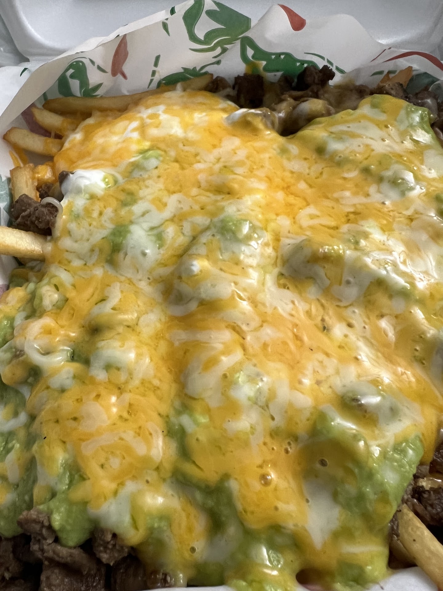 Lastly was.the food. Had the Super Nachos and the Choncho Burrito (yeah...unique name) and in total it set me back less than $10 bucks (INSANE Value!). The super nachos were AMAZING š. A little light on the cheese but it was just right with all the steak, cream, beans, salsa, and guac piled on top. We had every chip loading with flavor and ran out of chips! I actually used maybe 1/5 of the toppings and added it to the burrito. The Choncho was good but mildly disappointing compared to the nachos. The special part of several of their burritos is the use of fries instead of rice for a starch. Unfortunately that doesn't travel very well and is very under seasoned compared to the rest of the fillings. So while the nachos were 'never ending flavor with every bite', the burrito was Russian roulette of 'oops...got a mouthful of starchy unseasoned potatoes'. If eating in the store and they stayed crispy they might provide a contrast in texture, but it felt like they were cut too thickly and fried too lightly to retain any crispiness in the middle over the burrito after any stretch of time. A serious downside when the place promotes its drive-thru and you can expect travel with food.