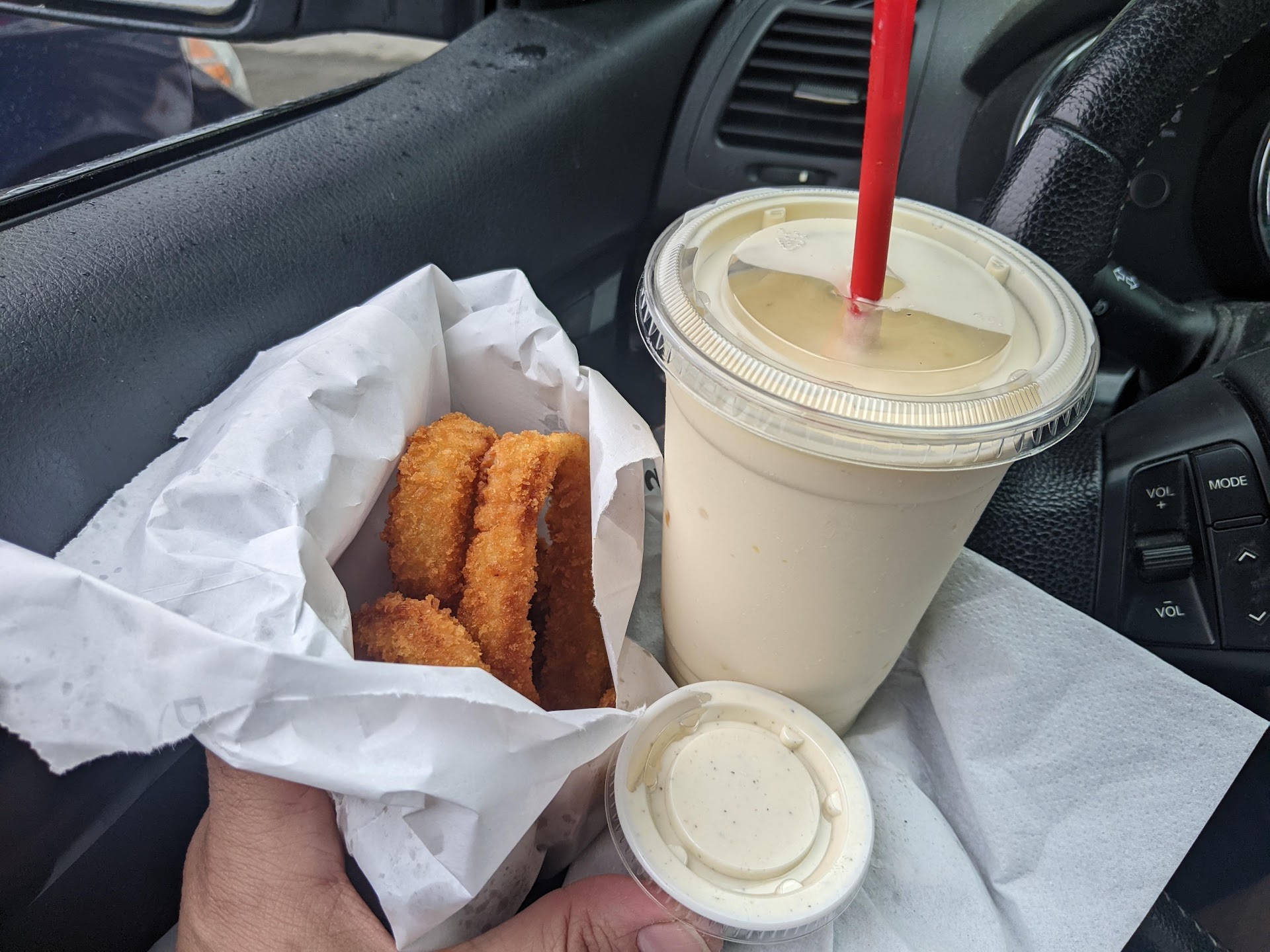 The $8 shake was poorly mixed giving it a grainy texture that reminds me of ice milk. The butterscotch flavor is so scant it just tastes like a sub par vanilla shake. Also: thin. Seriously McDonald's vanilla shakes are a better experience than this.