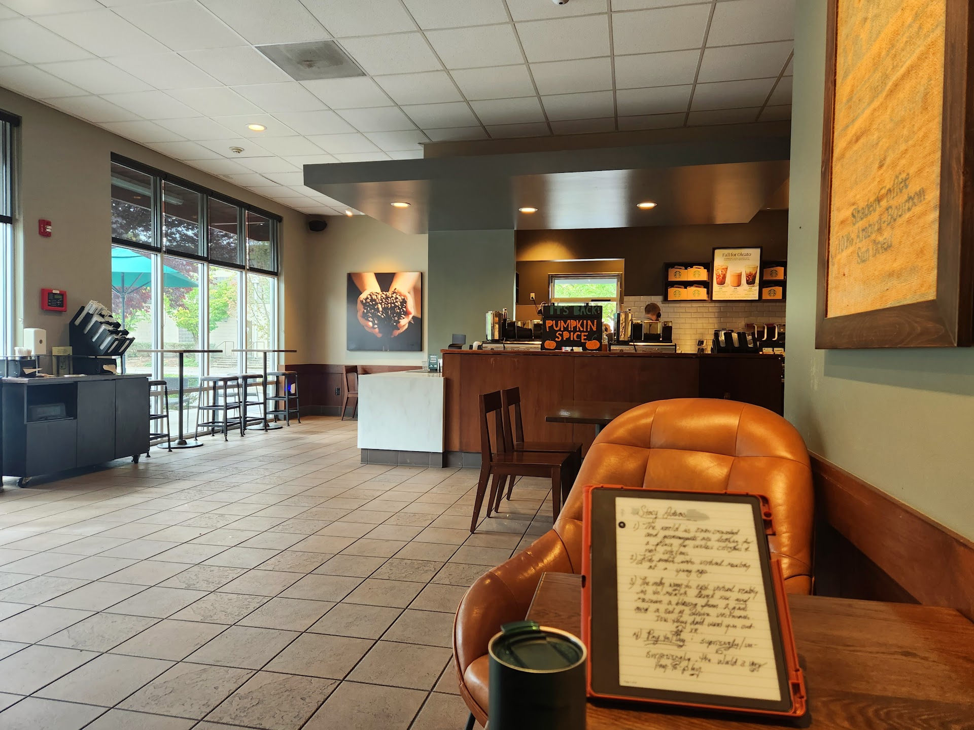 Walking into this Starbucks, it seems to be over staffed by a few people because on average, the drive-thru is non-stop, but inside the narrow wide hallway-like design is pretty much always empty. Precedence going to their mics & window, the service is surprisingly immediate--you can tell why when you get a taste. During this whole pandemic, like many other businesses in their industry, there's an awkward corner (on the far right entrance) filled with disheveled piled up chairs. The utter lack of any communication between usual small group colleagues, especially crammed behind a corner counter and well stocked display case, plus the really low volume background music & the infrequent anti-social customers created a sort of uncomfortable unwelcome. TIP: if you're pro-social-distancing & have a strong opinion or agreement with mandating everyone to properly wear masks, you will want to avoid this location because * the few times I've sporadically seen a customer inside whom all seemed to prefer sitting closest to the pick-up spot+main door, not a single one of them wore nor visibly had a mask on/nearby or at least somewhere in plain sight and apparently this is acceptable by the 1/2 dozen Starbucks employees... or maybe none of them noticed... even though there was ever only 1 staff member being productive at a time. The one-on-one interactions I had were OK. *I am not a regular customer, but the extremely open windows on 2 sides of the building provides ample viewing to passersby. Plus, in this otherwise high-traffic area, people only use this exit for a gas refill between Kent-Auburn-Renton...