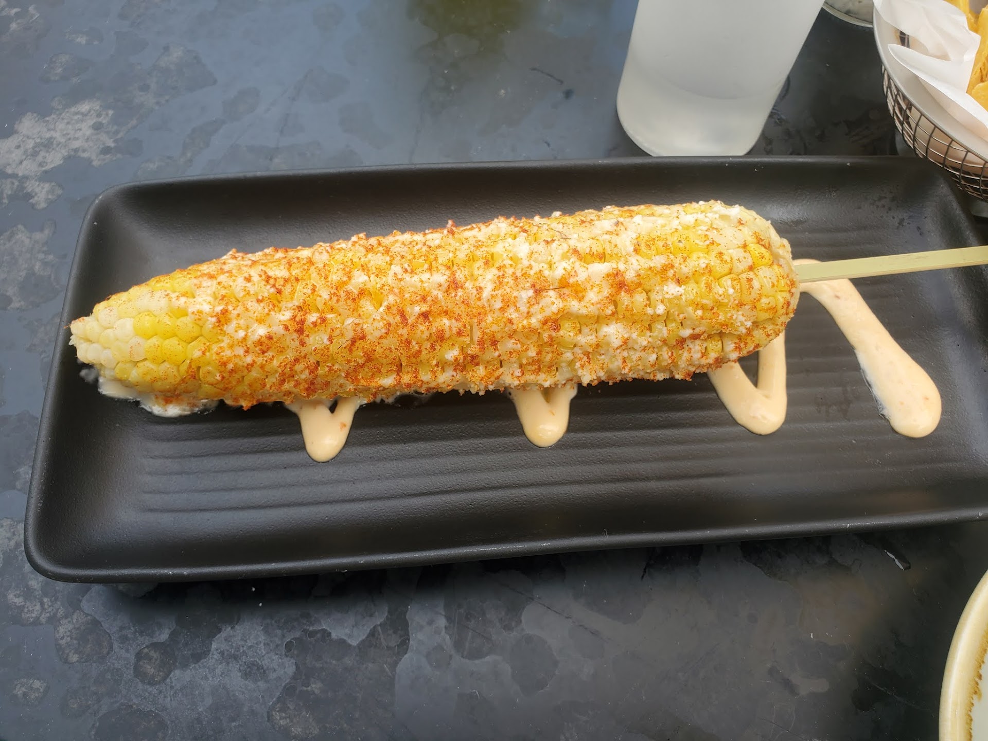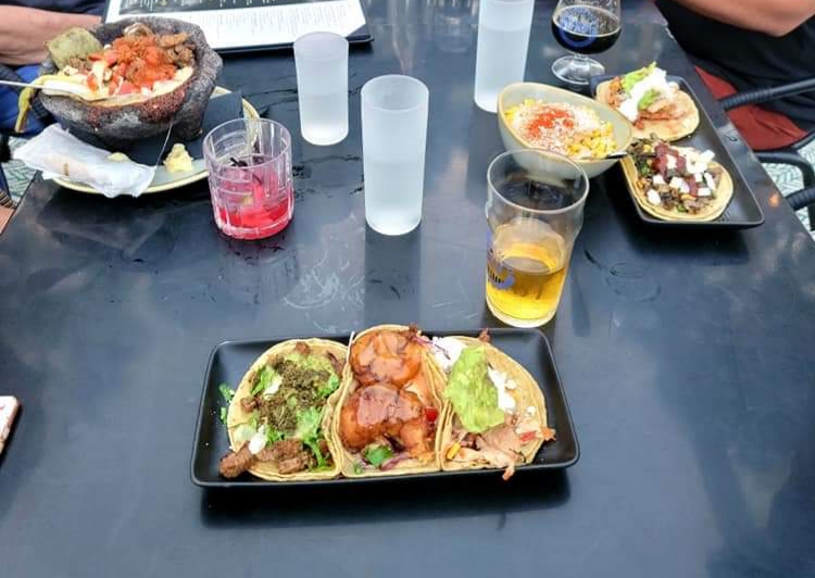 Food came out in a reasonable timeline. I ordered two tacos (chicken and coconut shrimp) and they both were served in corn meal tacos. They both "melted" through the two and three layer tacos--after I wondered why they served them with a three layer taco (Oh that's why). Just a mess. Not a terrible taste though. Just messy.