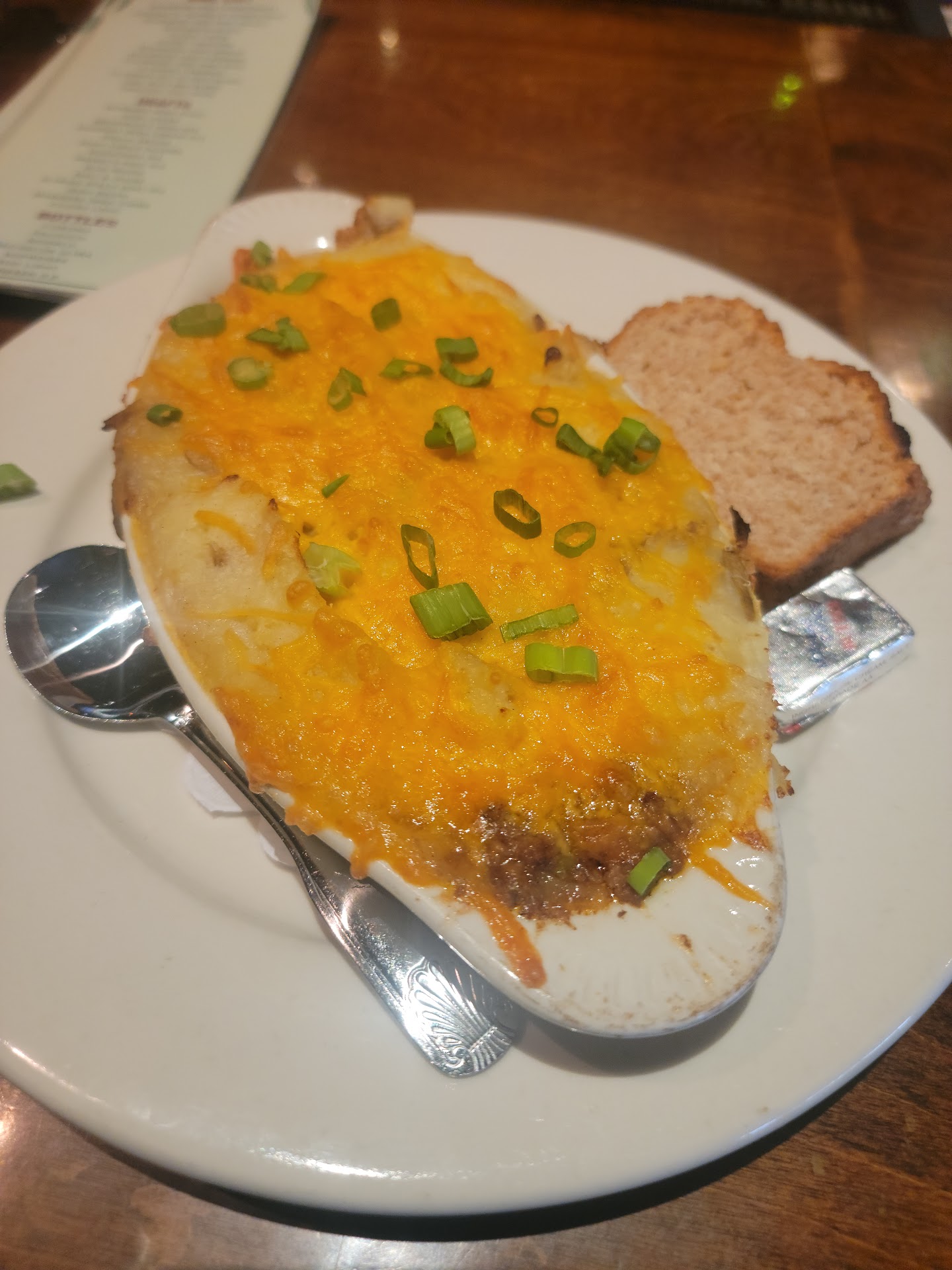 I decided to should try my luck at a dessert because it could have been a fluke, and they had bread pudding as a special. I got the first bread pudding and it was doused in a cream sauce and had reddi-whip on top. I took one bite was got overwhelmed by whiskey. I politely ask for a different bread pudding as I donāt drink and the alcohol was definitely still there strong. They bring me another bread pudding without the whiskey cream sauce and just reddi-whip. This bread pudding was moist, but almost flavorless. I understand this is a pub and there are people who might enjoy the shocker cream sauce, but there was no sweetness to speak of in the dish. I was not asked to show ID before being given an alcoholic cream sauce and Iām in my early 20ās. Thatās not the worst of it, I get the bill and the bread pudding was $9.50. I gave my tip of $5 on a $28.00 bill and said good riddance.