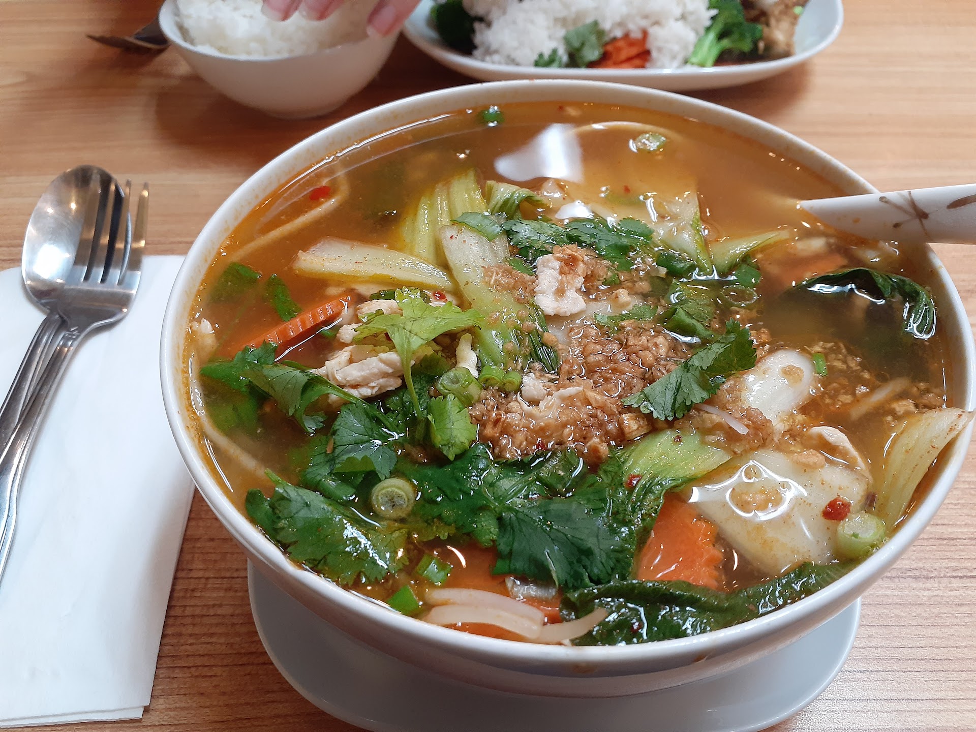 I guess from the latest reviews this place declined alot and I can tell from the food that I ordered, tom yum is really lack of flavor, the only flavor that I taste from the soup really just cilantro, doesn't even have enough saltiness (this is coming from someone that complains alot that American food is too salty), you're not really thai restaurant if you can't make decent tom yum.